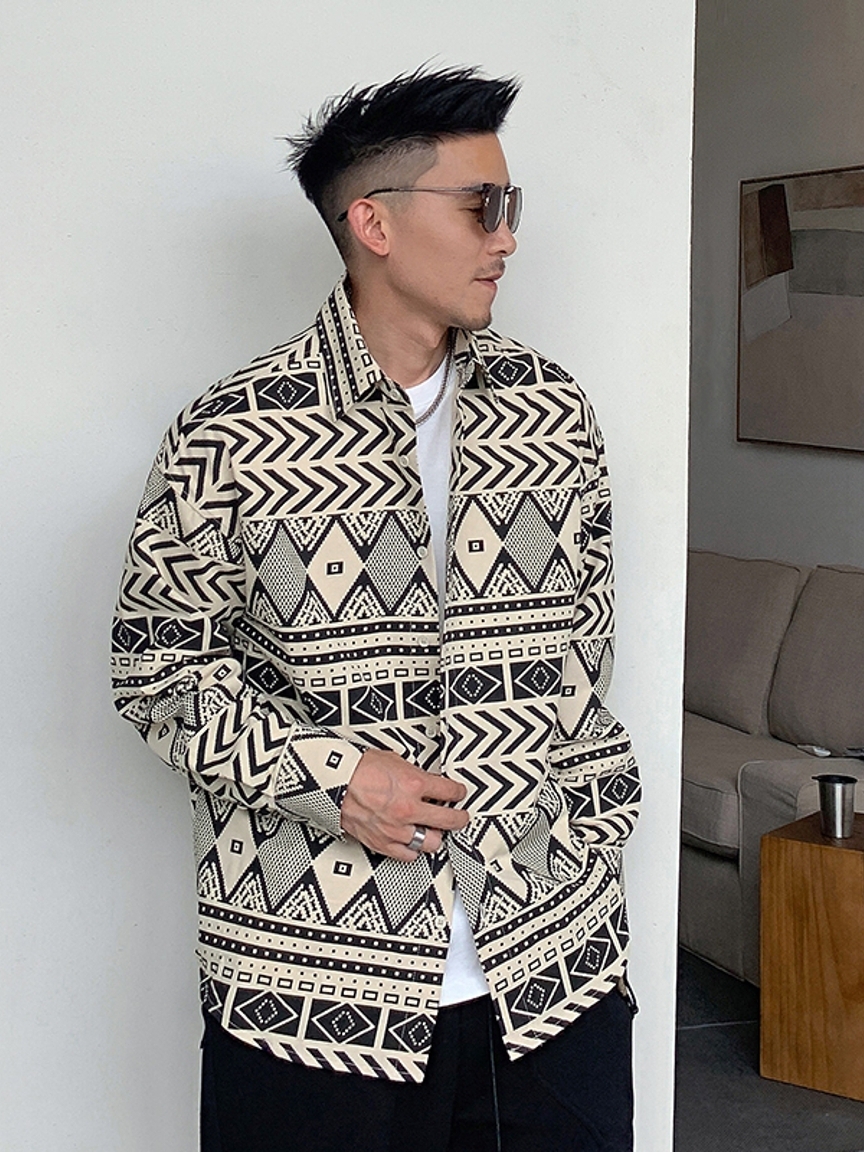 翻领的设计,营造出干练的气场,这件衬衫穿上很帅气,里面搭配上白色T恤,下半身配上休闲裤,呈现出阳光的一面。