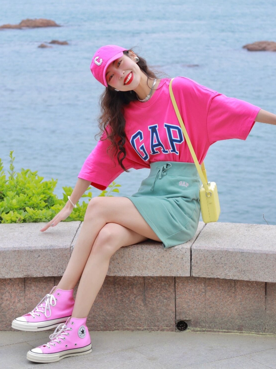 简约的高腰设计,搭配上修身的版型,上身显瘦又显高。