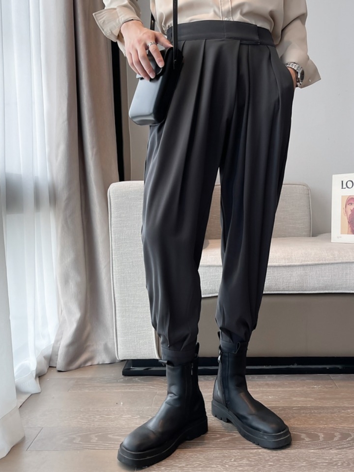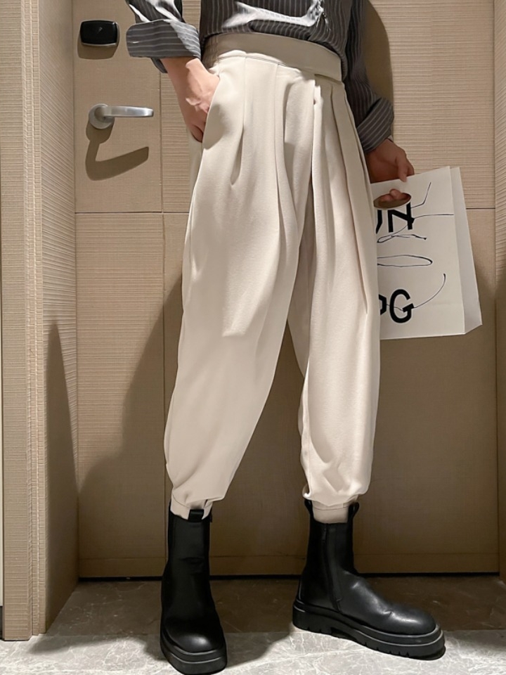 高腰的设计,拉长腿部线条,显瘦效果很好,高腰的版型,很显高挑,修身的剪裁,修饰腿部曲线,上身很有范。