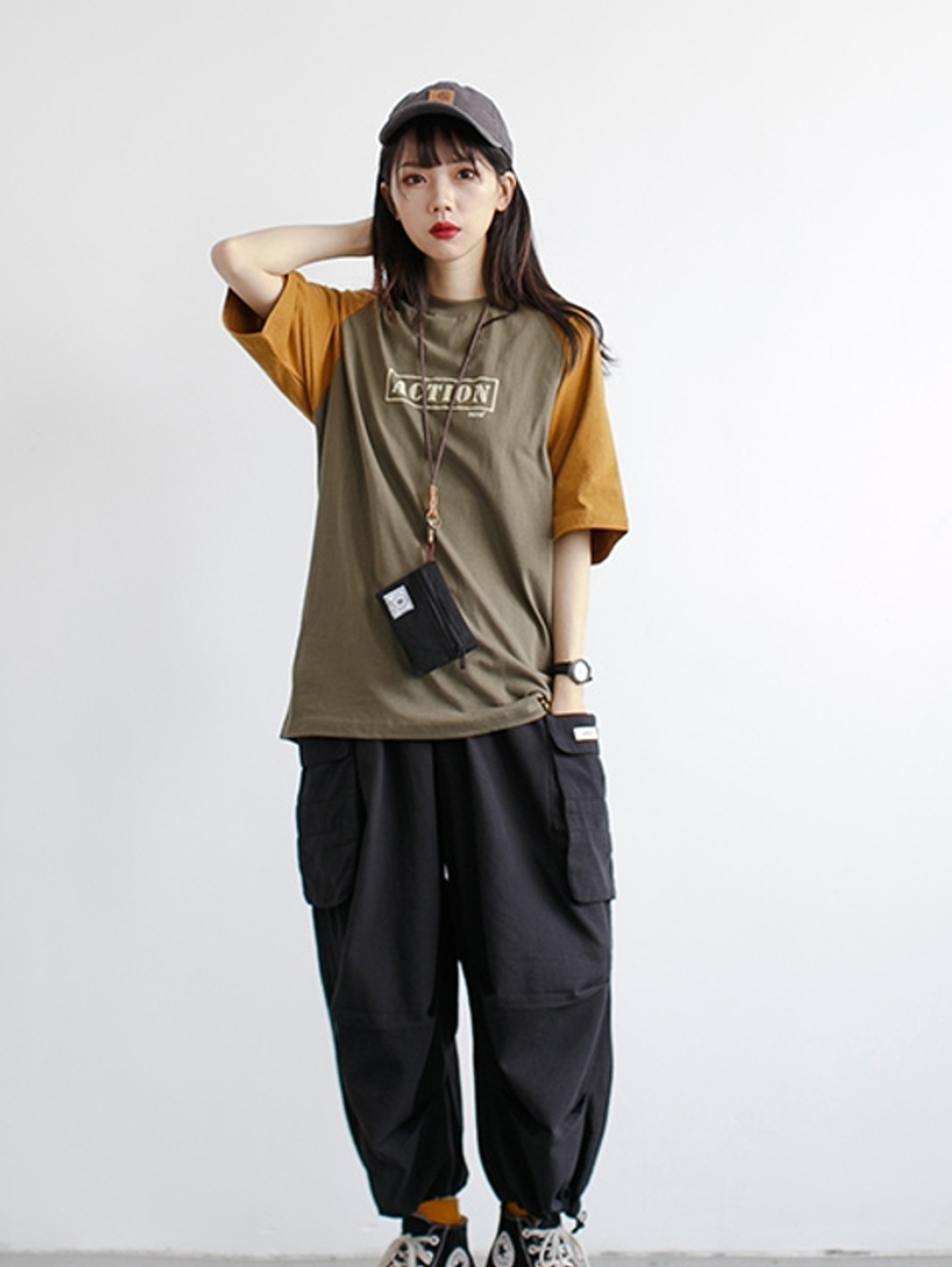 这款t恤是简约的风格,宽松的版型,时尚百搭,胸前的字母印花,很有个性,搭配牛仔裤或者短裤都很好看。