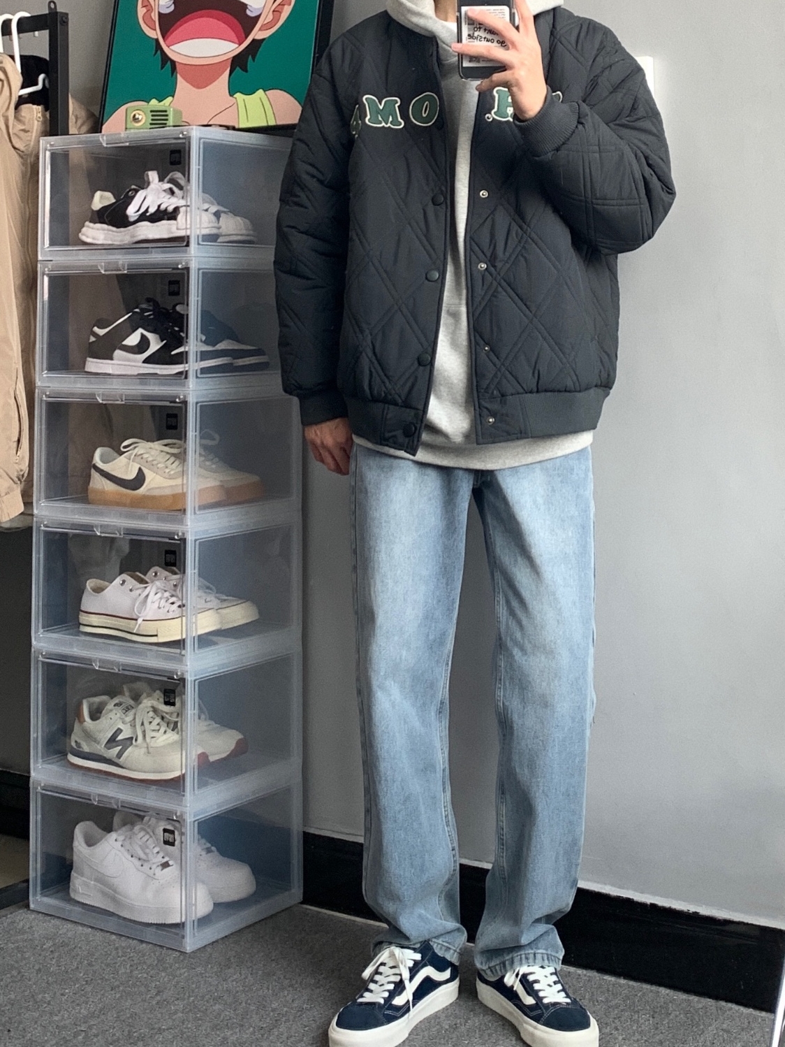 日常穿搭上,这款直筒牛仔裤可以搭配一件卫衣或者短袖T恤,脚下再来一双运动板鞋,整体造型感十足,非常酷炫。