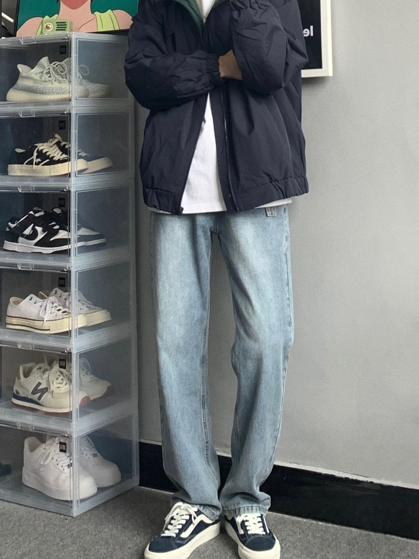 这一款浅蓝色牛仔裤,宽松直筒的版型,不挑腿形,对有肉肉的人很友好。常规的厚度,非常贴心,可以让你一年四季都能穿。