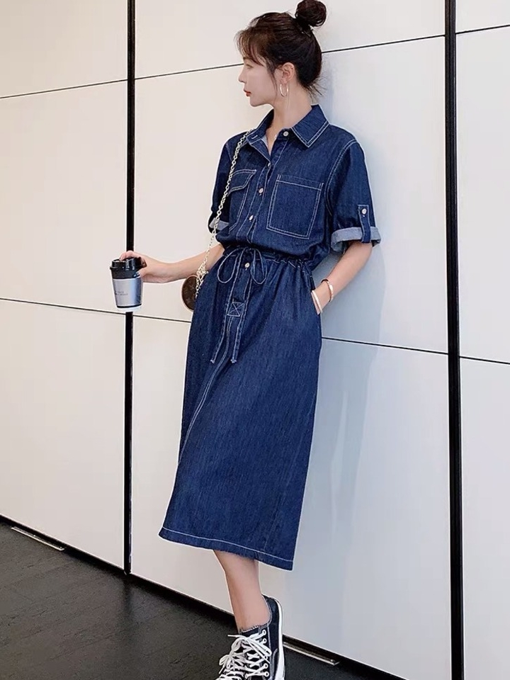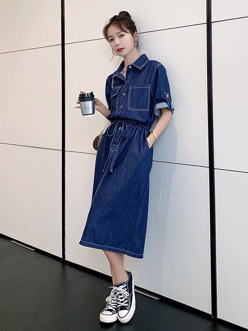 我觉得夏天最简便的穿搭,牛仔连衣裙配上帆布鞋,修身高腰的设计拉长身材,水洗蓝色复古大方,方便行走,纯棉牛仔面料挺括有型。爱了爱了!