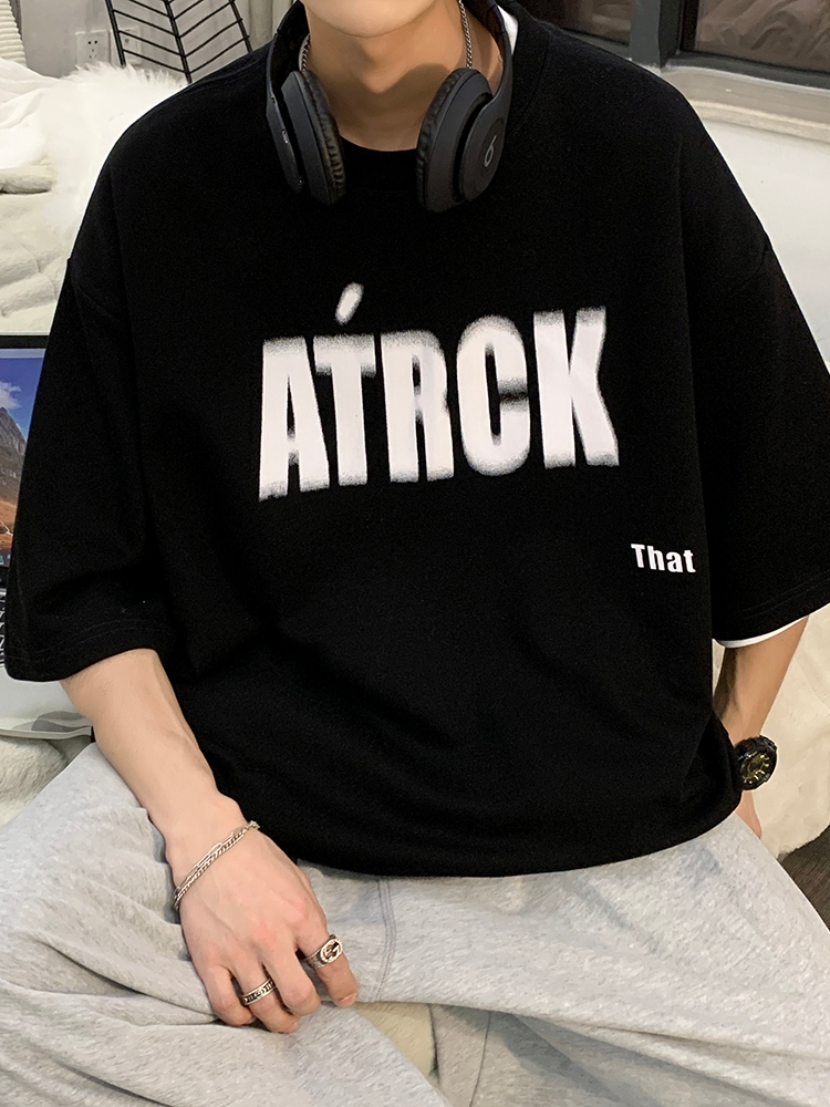 这款t恤是简约的风格,宽松的版型,时尚百搭,胸前的字母印花,很有个性,搭配牛仔裤或者短裤都很好看。