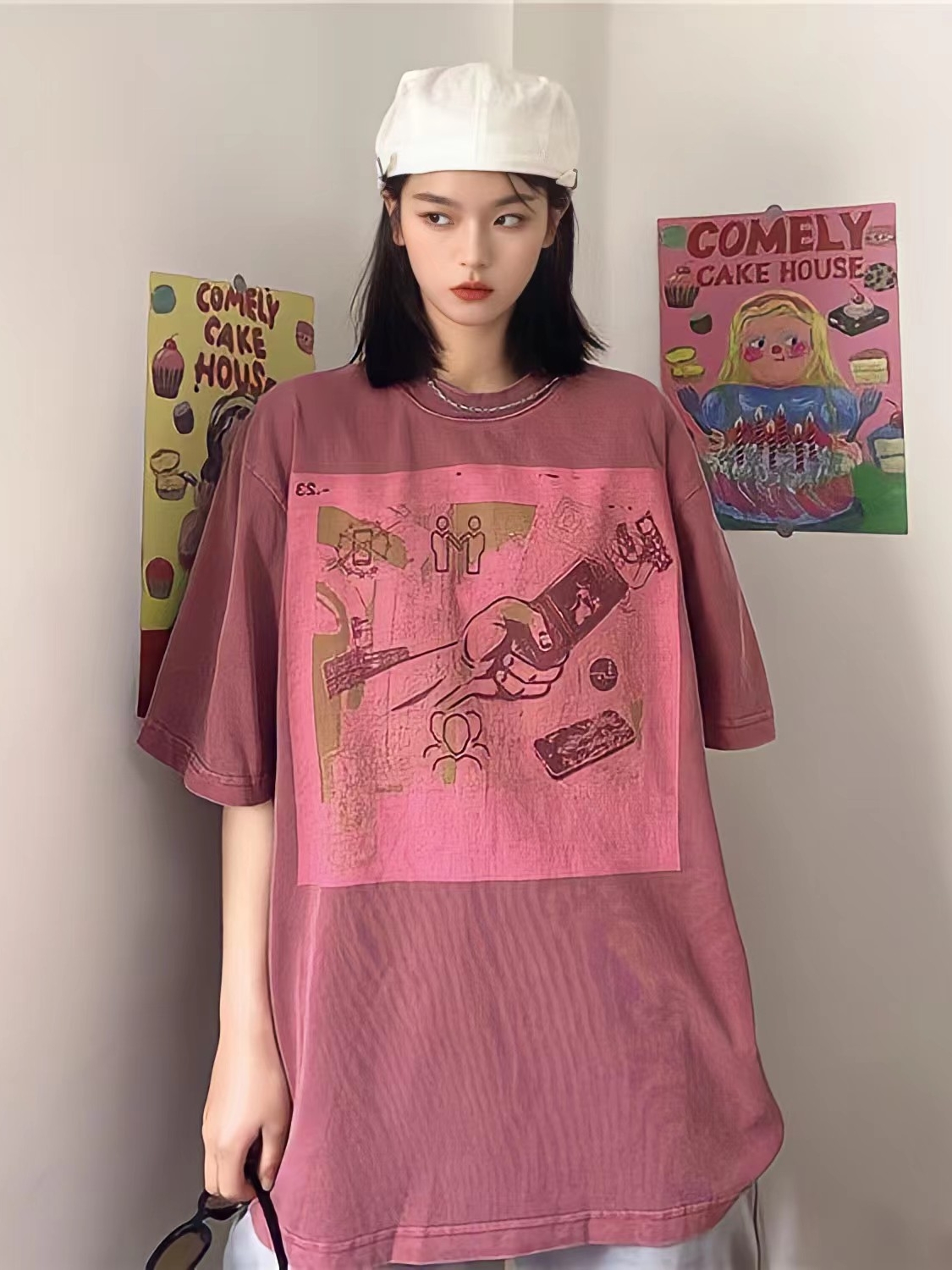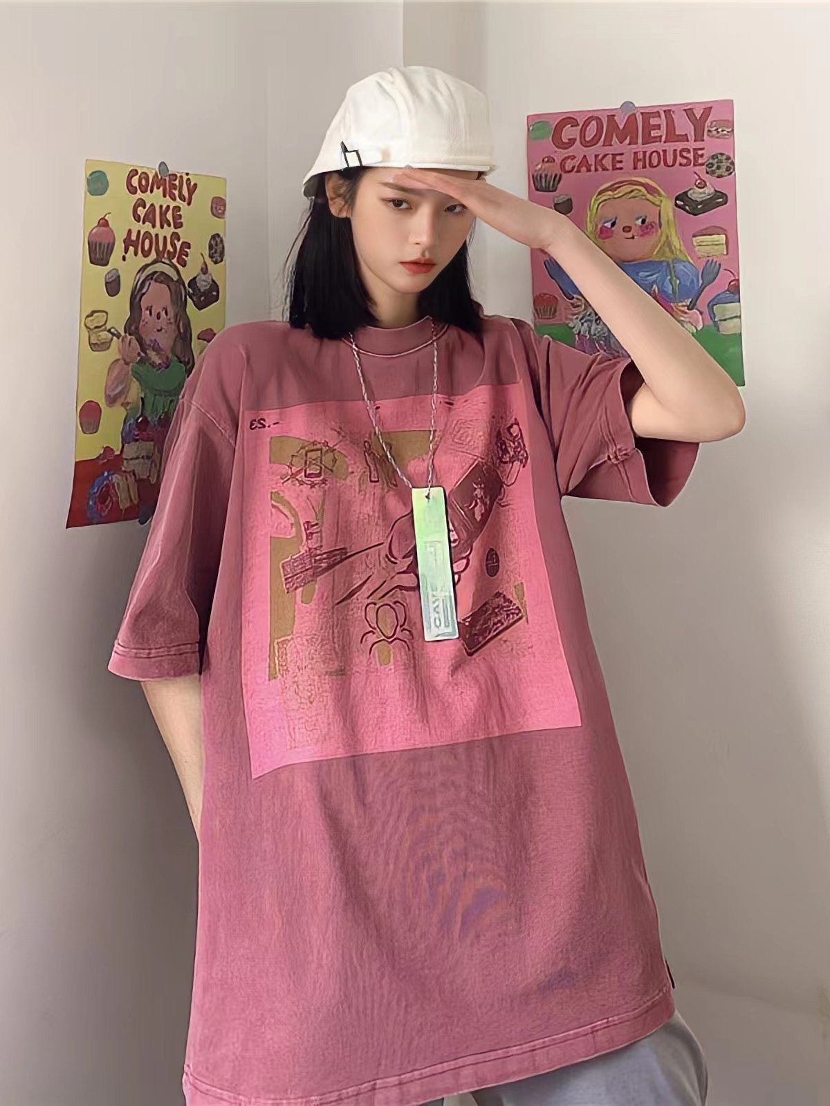 这款t恤是简约的风格,宽松的版型,时尚百搭,胸前的字母印花,很有个性,搭配牛仔裤或者短裤都很好看。