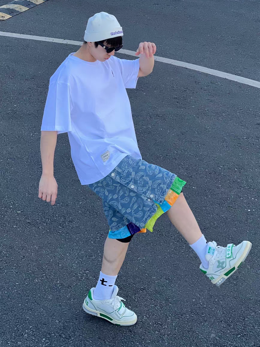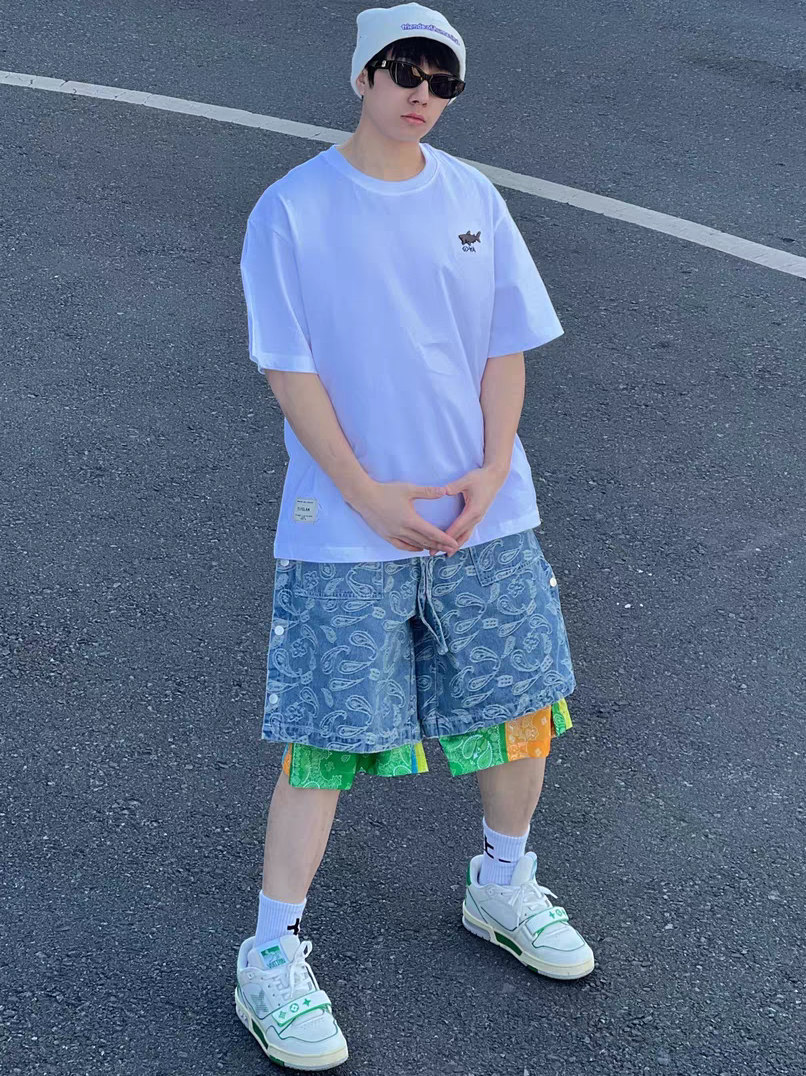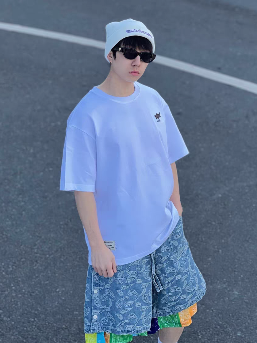 夏天穿白t绝对不会错,好看清爽又百搭,超级有青春的气息哦,也很适合情侣穿着的,胸口小鲨鱼的设计很特别,整体简约但是很高街。