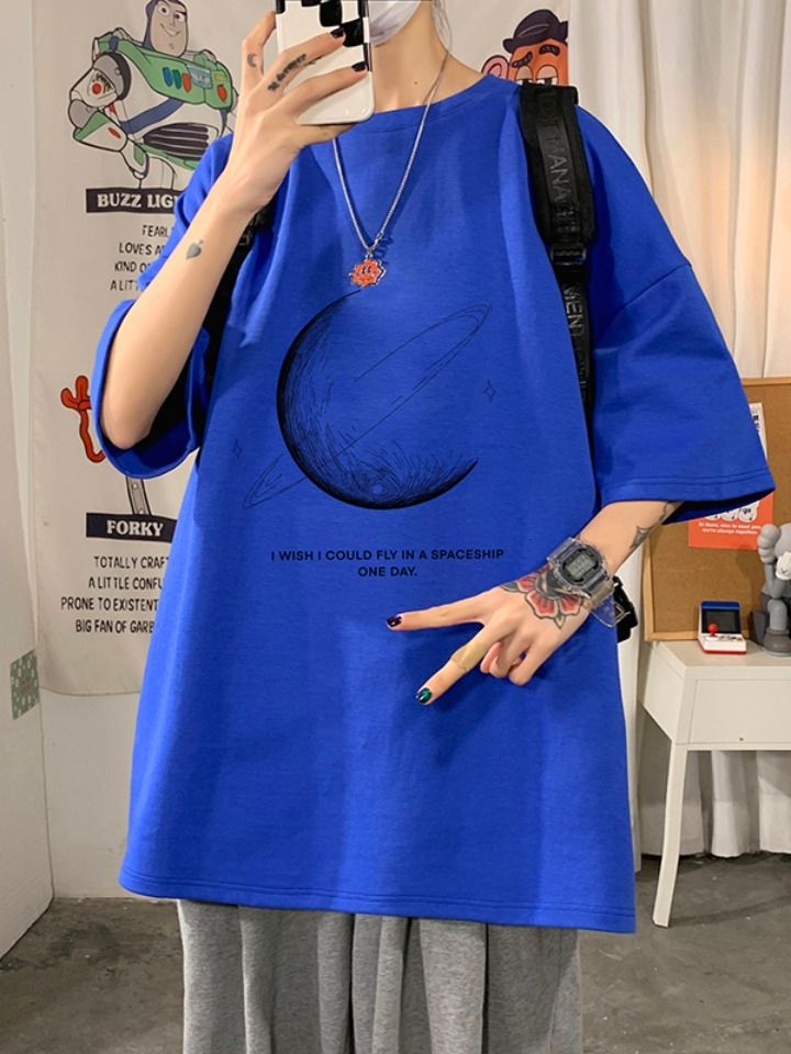 BF风的休闲宽松的款式,配上时尚的字母印花,是这件衣服的最大的亮点;随意穿着时,内搭牛仔短裤,配上鸭舌帽,也不失为一种时尚。