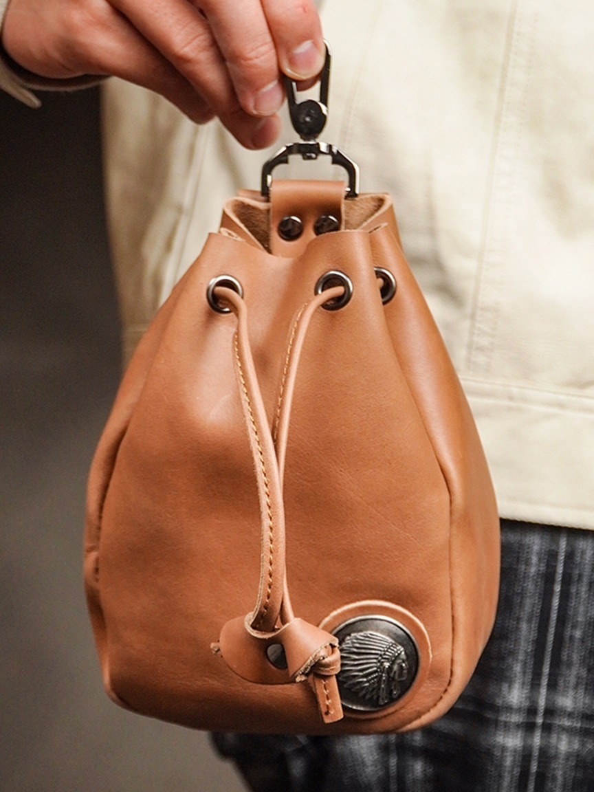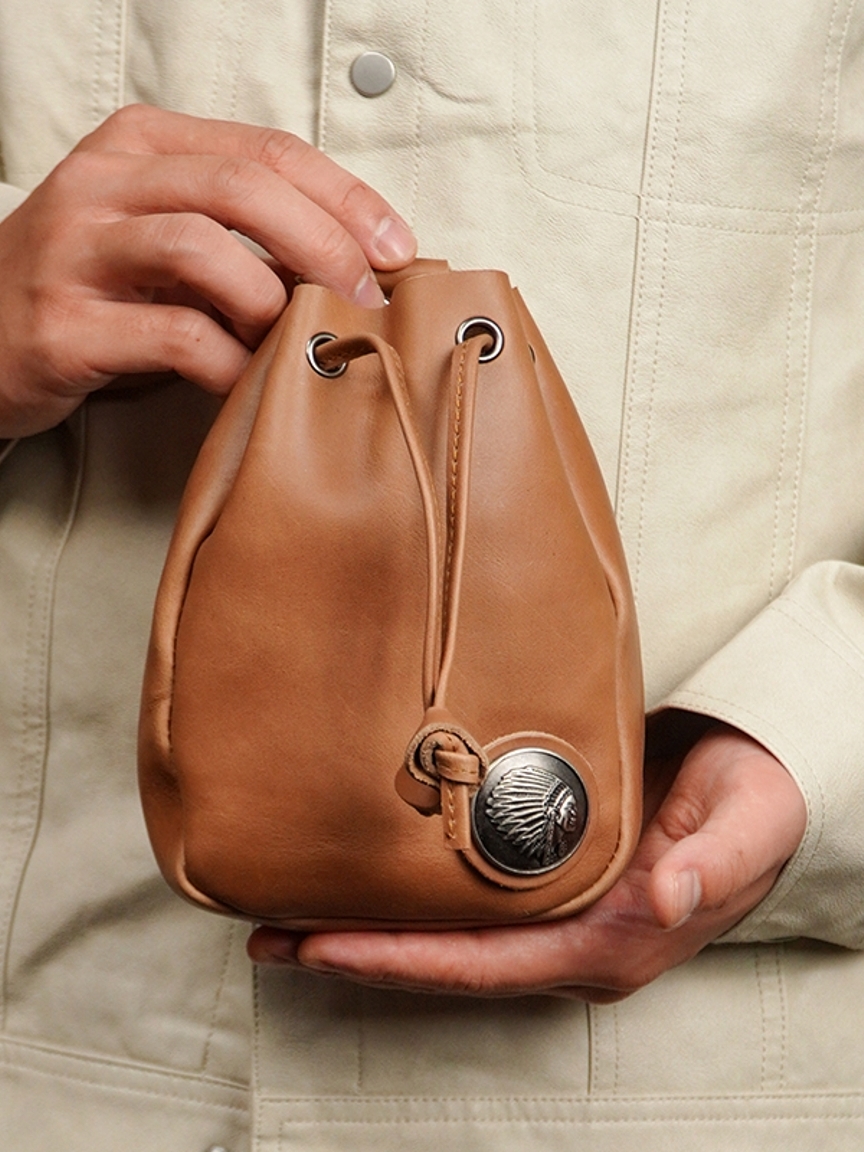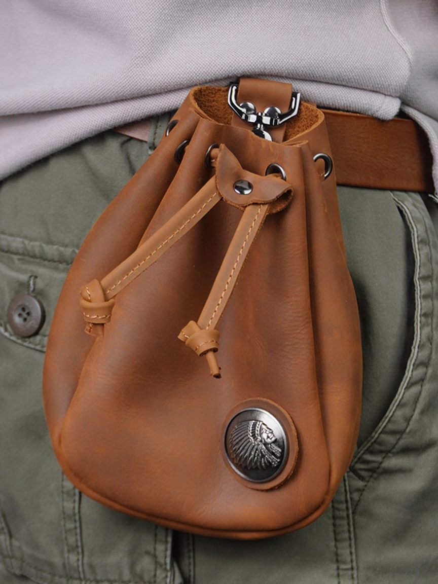 腰包选用头层牛皮材质,柔软舒适,腰带通过调节扣自由调节长短,加宽设计