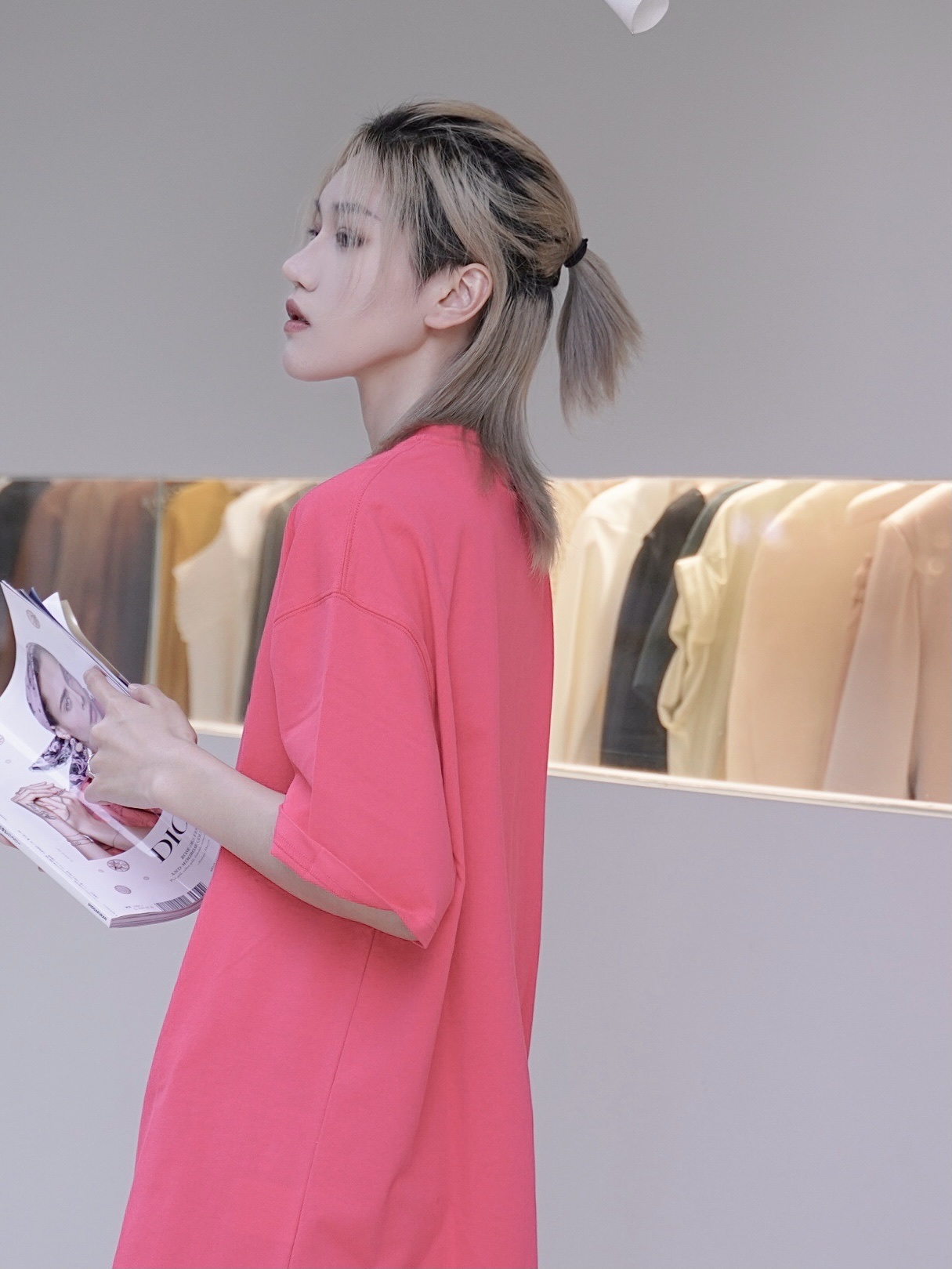 极富青春色彩的一款T恤,艳丽的玫红色衣身,张扬且不失活力感,从而将穿搭时的沉闷一扫而空。