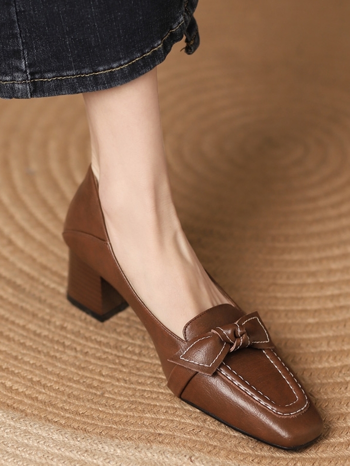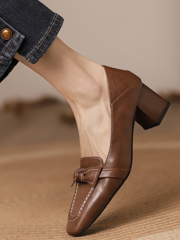 这款一字带方头粗跟单鞋,带着复古格调的方头设计,清新而充满柔美感,还增加了穿着的舒适感。