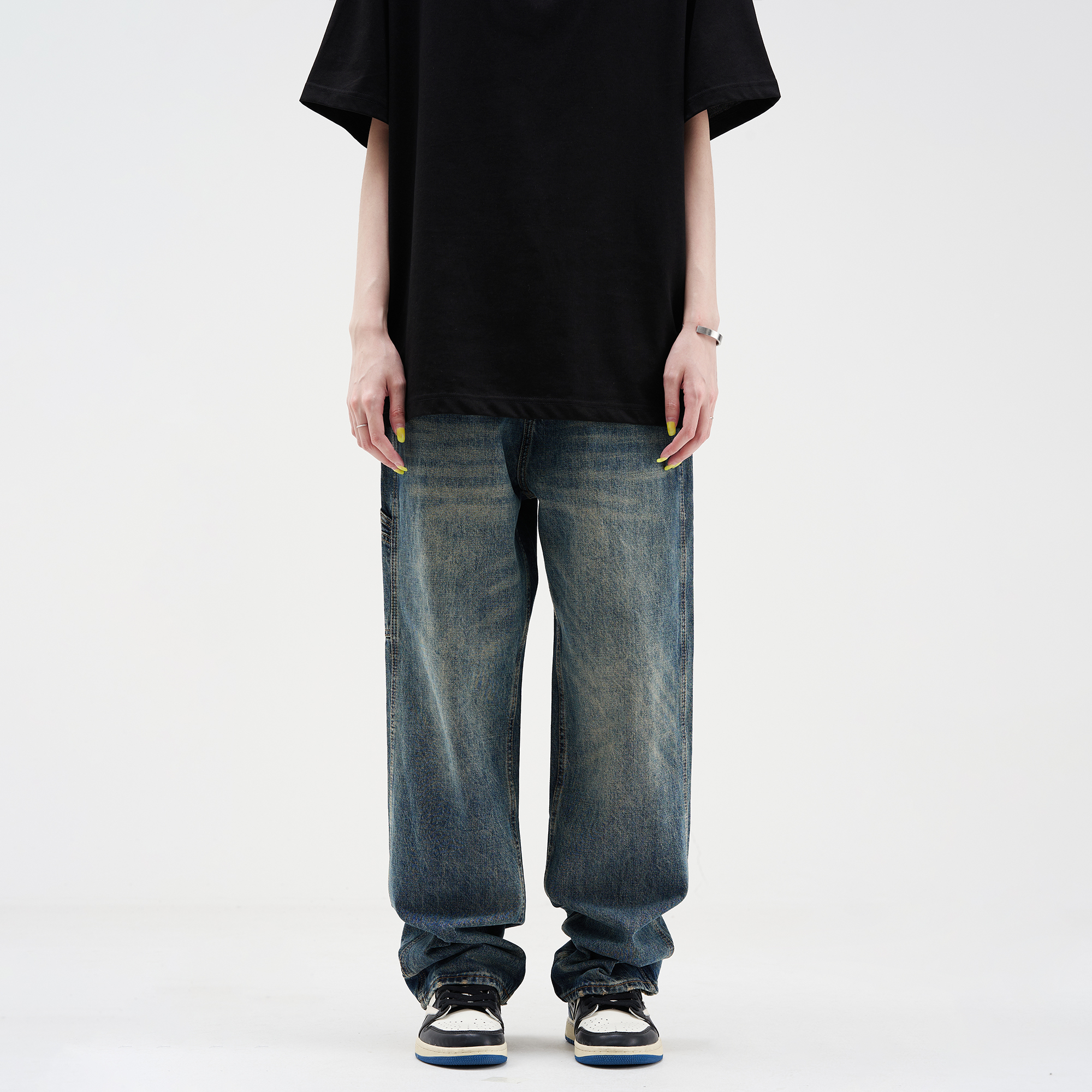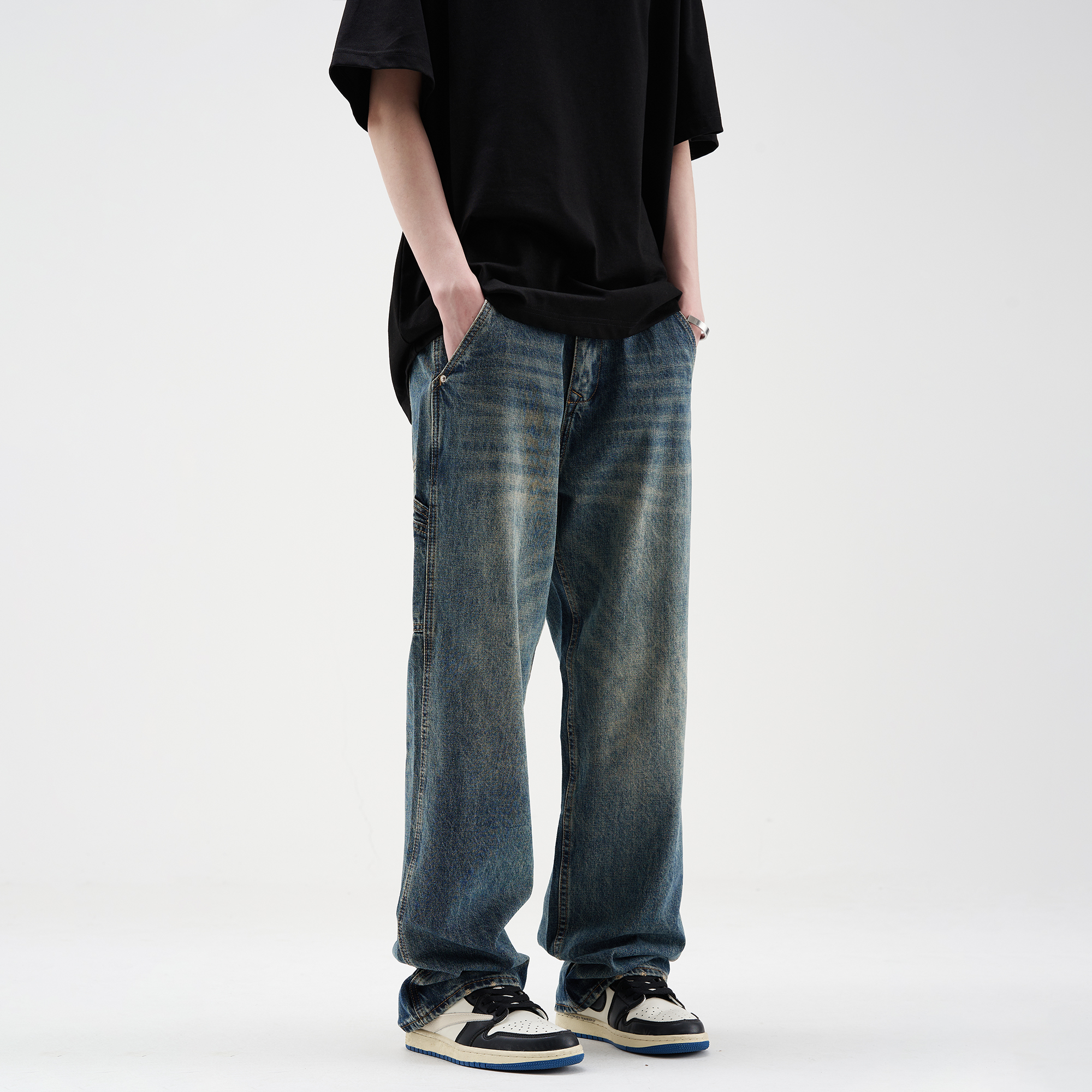 美式复古风格的牛仔裤,采用了水洗工艺,手感柔软,穿着舒适,宽松的版型,不挑身材,上身效果很好。