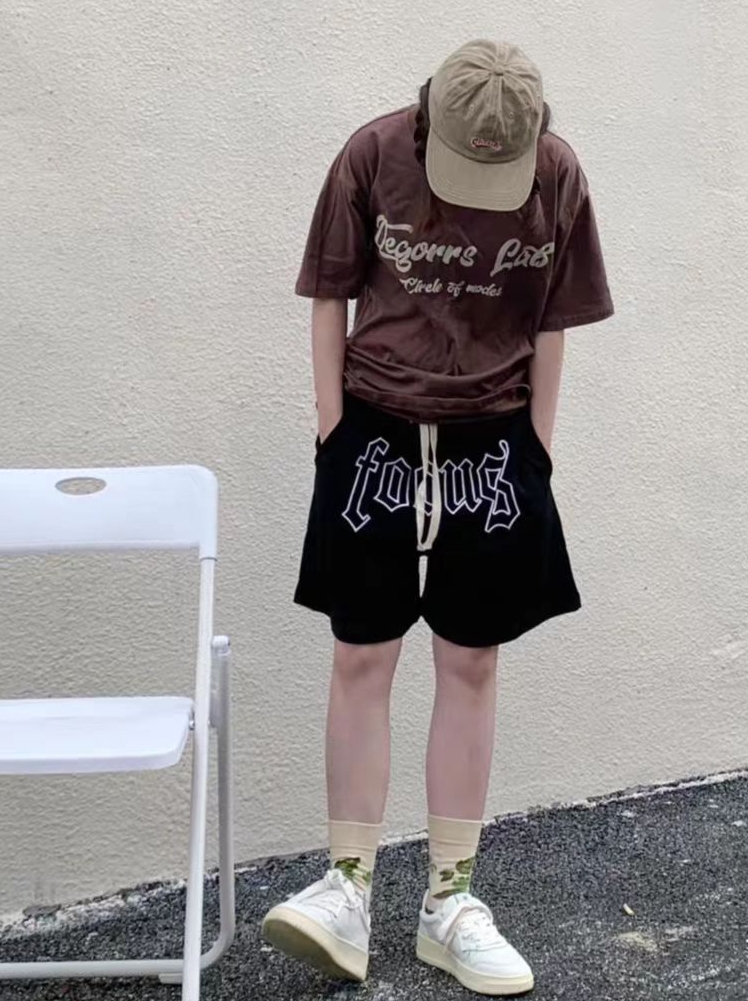 运动气息十足的一款休闲五分裤,简单的搭配一件纯色休闲T恤,非常酷。独特的字母设计,显得更加个性,时尚休闲。