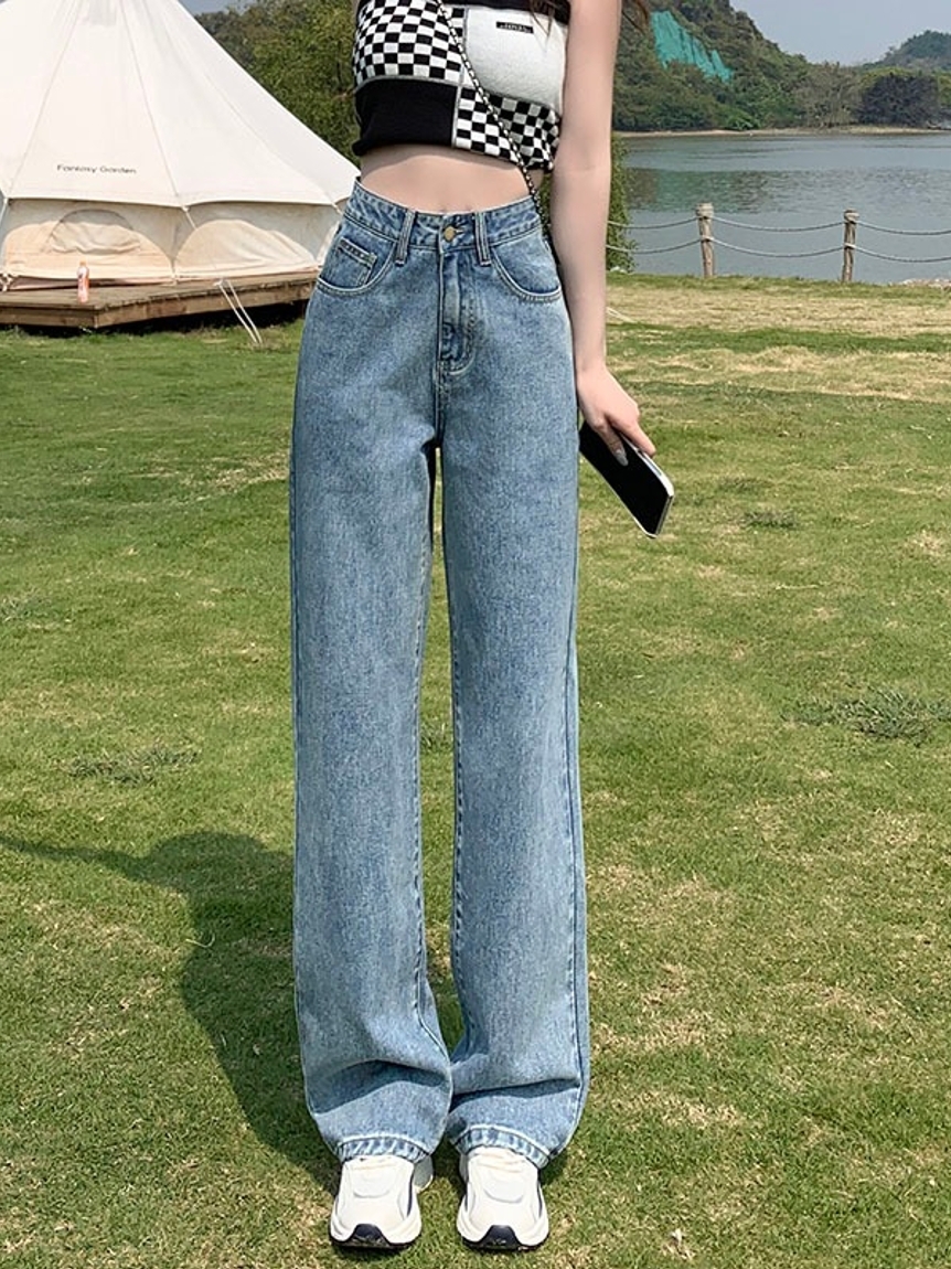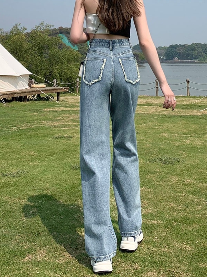 比较有复古风格的一款牛仔裤,它直筒的版型,让我尤其喜欢,穿上身悄悄遮挡住腿部的缺点,行走间更是显得整个人随性又有范儿。