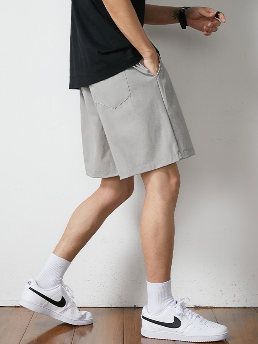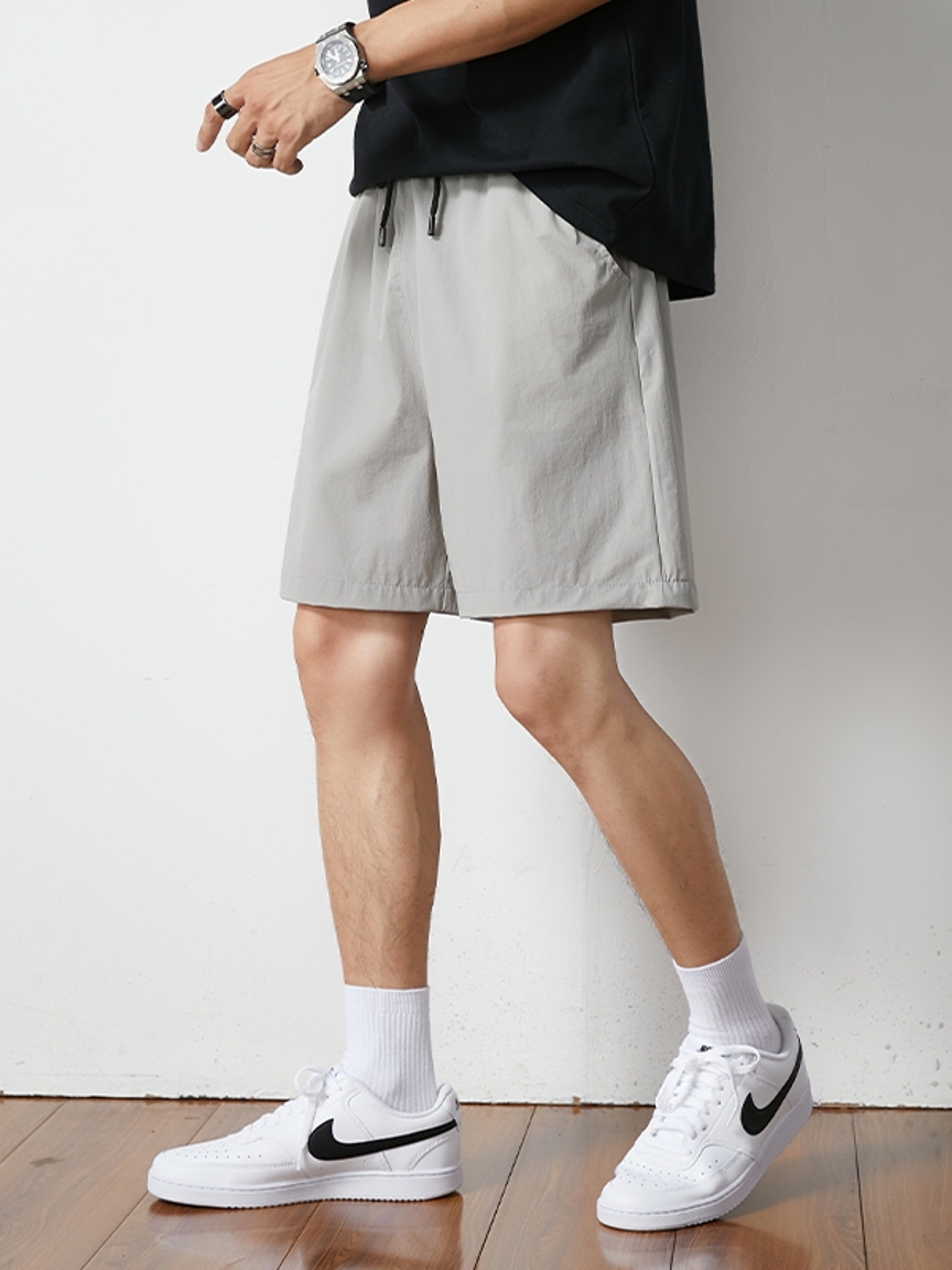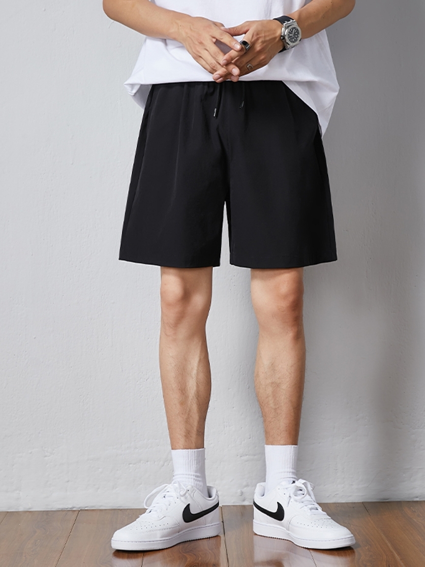 纯黑色的短裤最好搭配,宽松的T恤,简单的搭配就能变成阳光男孩。