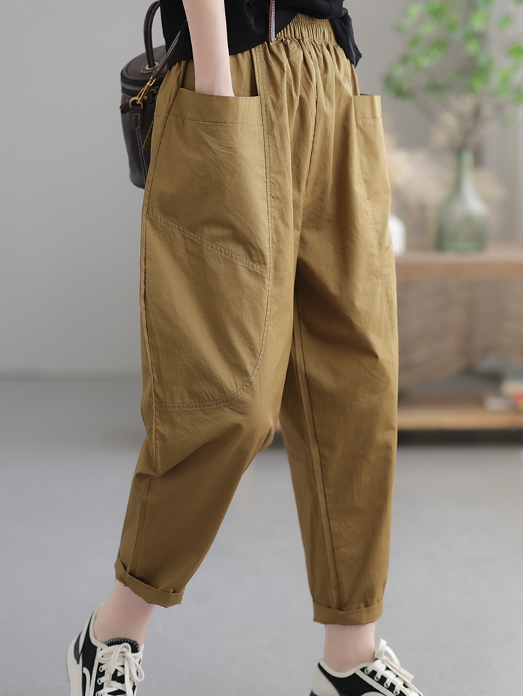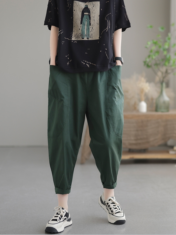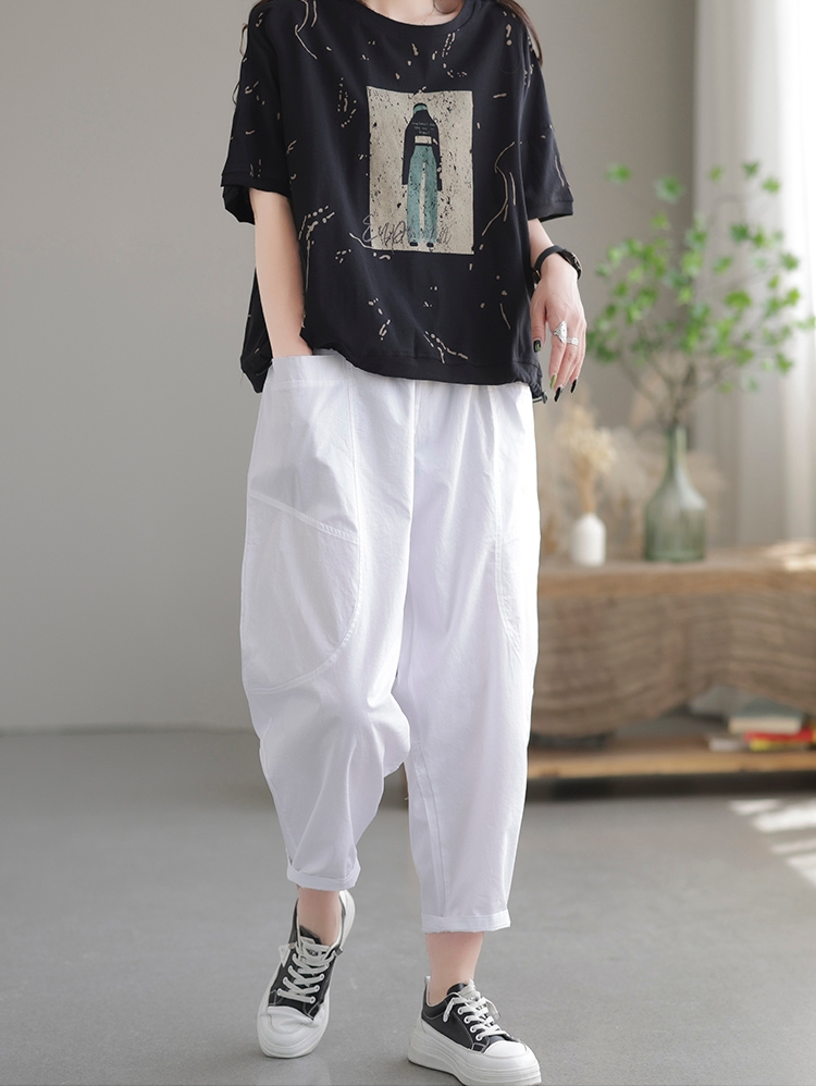 结合宽松的哈伦裤版型和恰到好处的七分裤剪裁,上身非常清爽舒适,很适合夏天穿。两侧口袋设计,做工精湛,复古的配色,弥漫着浓浓的怀旧气息,不过分甜腻,特别耐看。