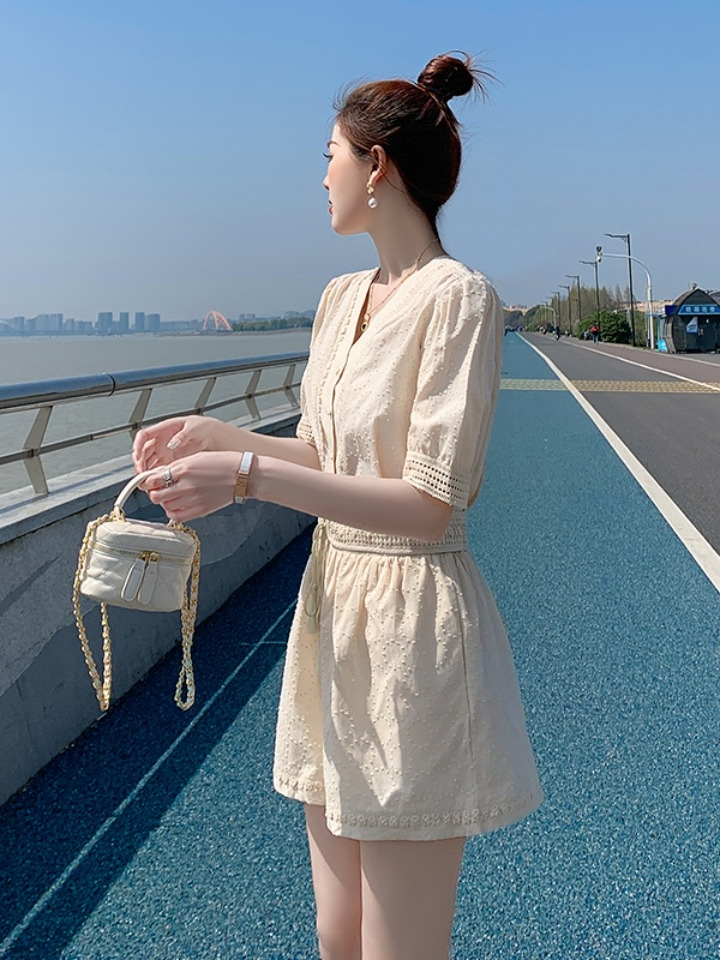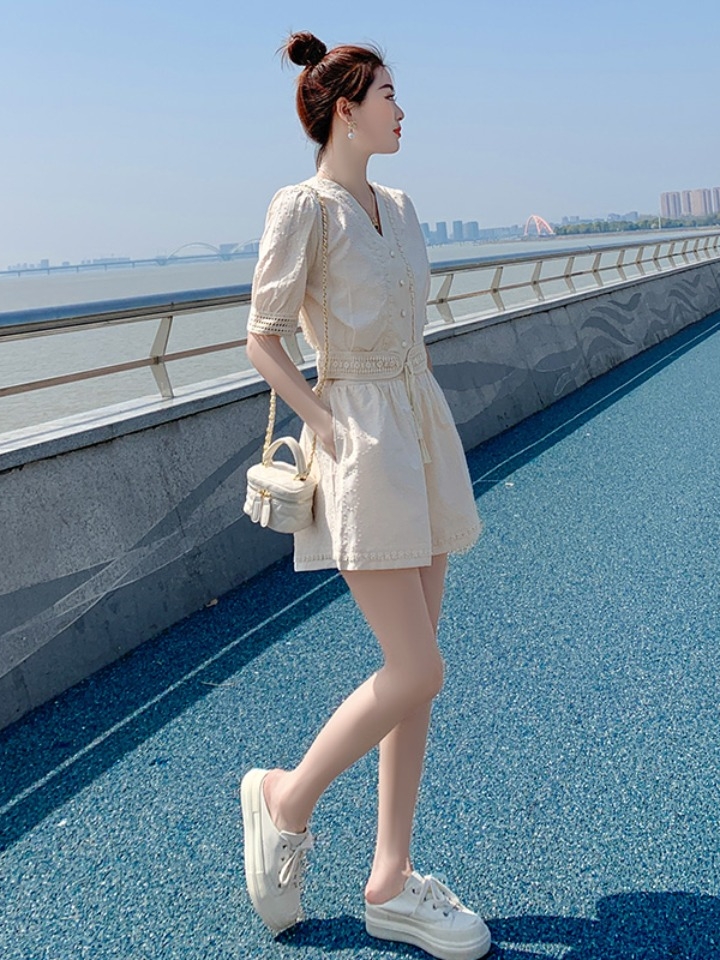 休闲运动范儿的一身套装,轻松帮你解决搭配烦恼,带有青春的活力,搭配舒适贴合的休闲短裤,十分的显瘦,减龄又很显气质。