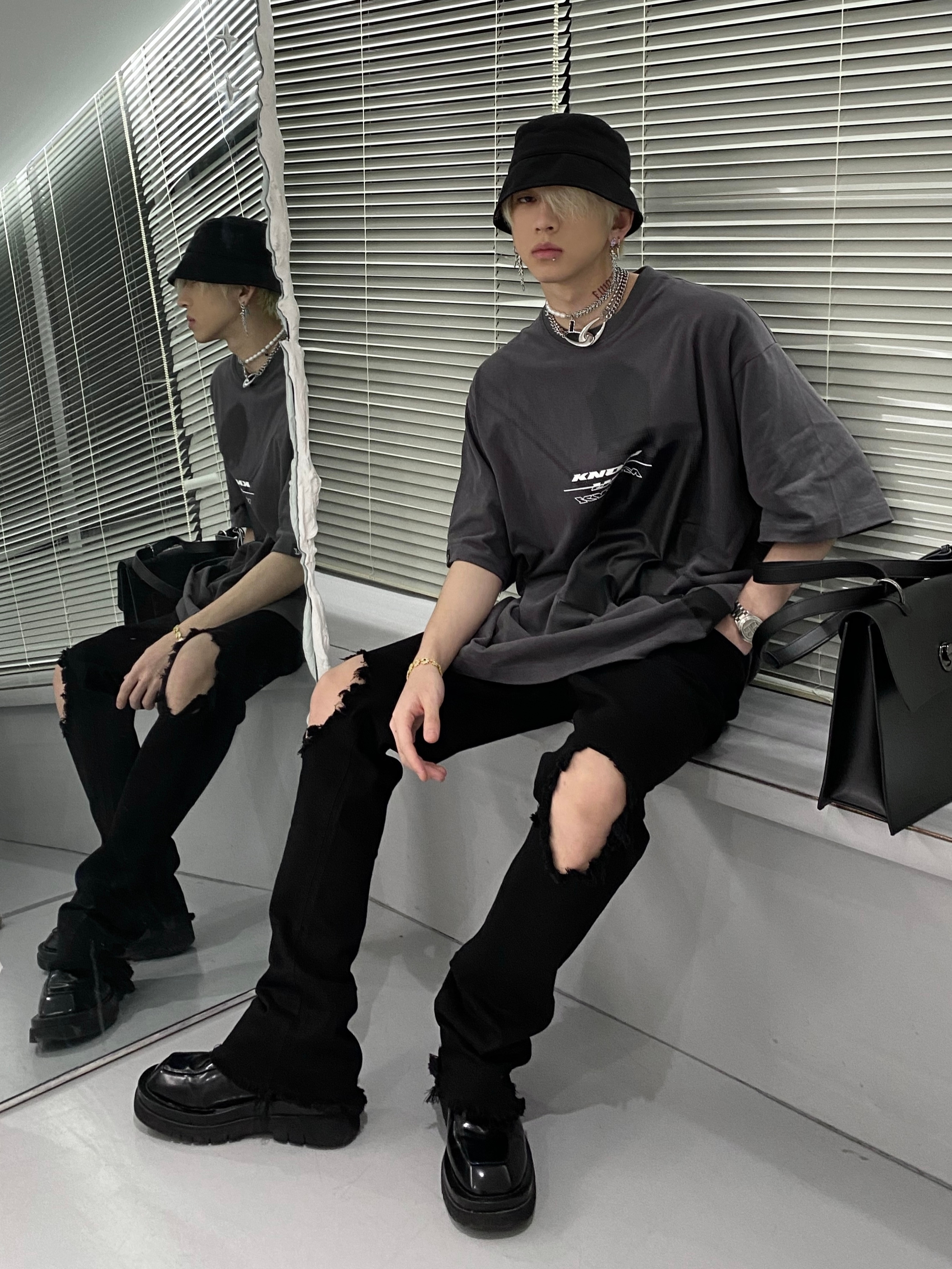 微喇叭裤型露出迷人脚踝更加性感精致显高挑,融入个性的破洞和磨边设计,更具青春的随性feel。