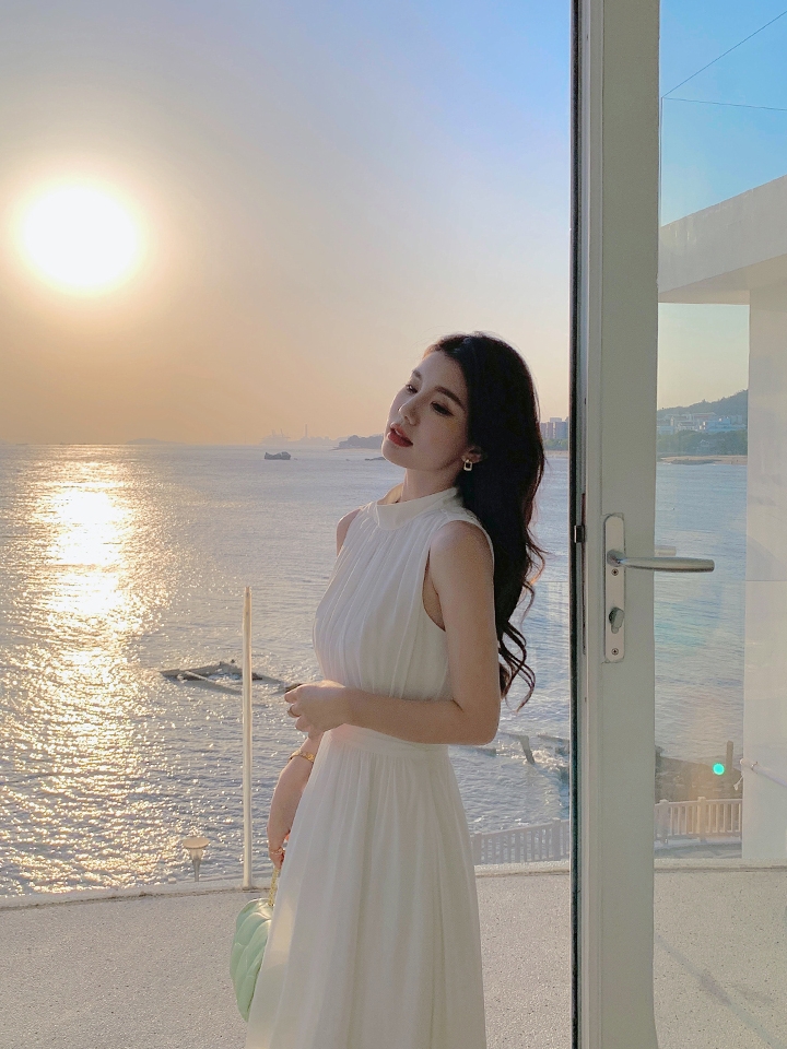 这款法式连衣裙,半高领设计简单大方,修饰脸型。白色仙气不挑肤色,穿上就是显白。高腰裁剪以及裙摆褶皱是一大特色,收腰显瘦的效果不错哟。