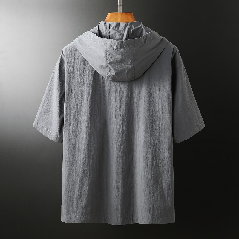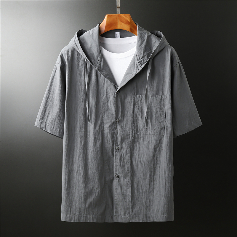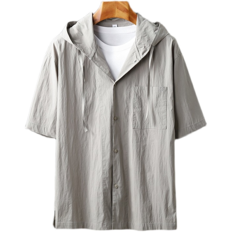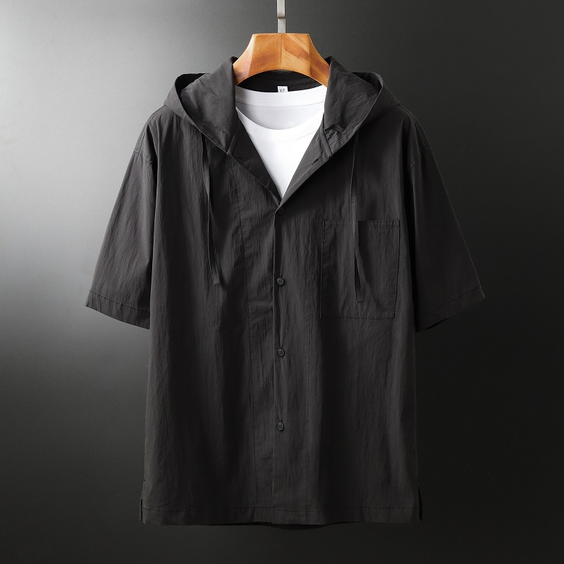 短袖设计,修饰手臂线条。宽松版型,穿着舒适自在。衬衫翻领,修饰颈部线条。