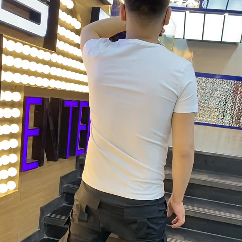 修身版型,凸显身材曲线。纯棉材质,穿着舒适透气。基础款t恤,百搭不挑人。