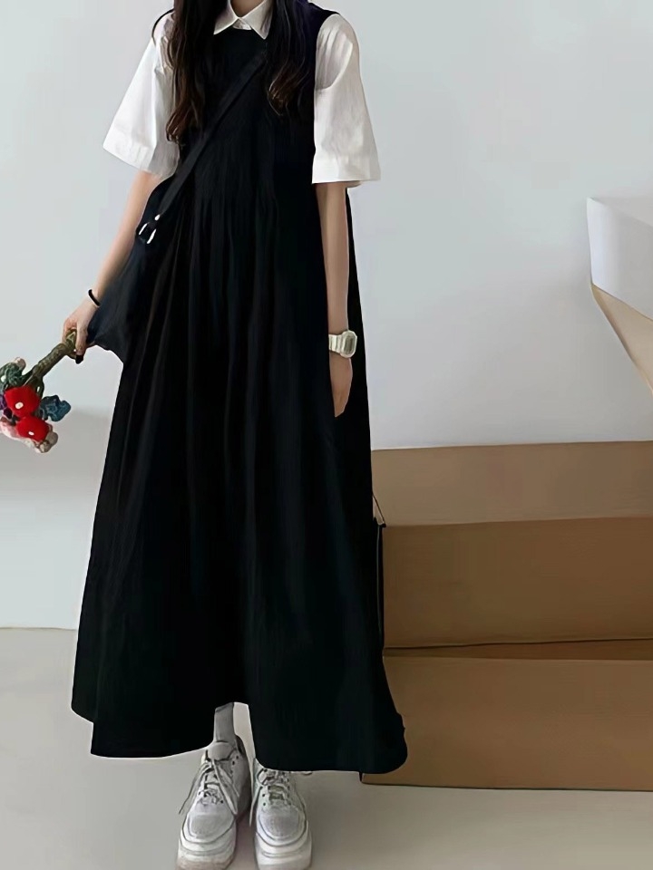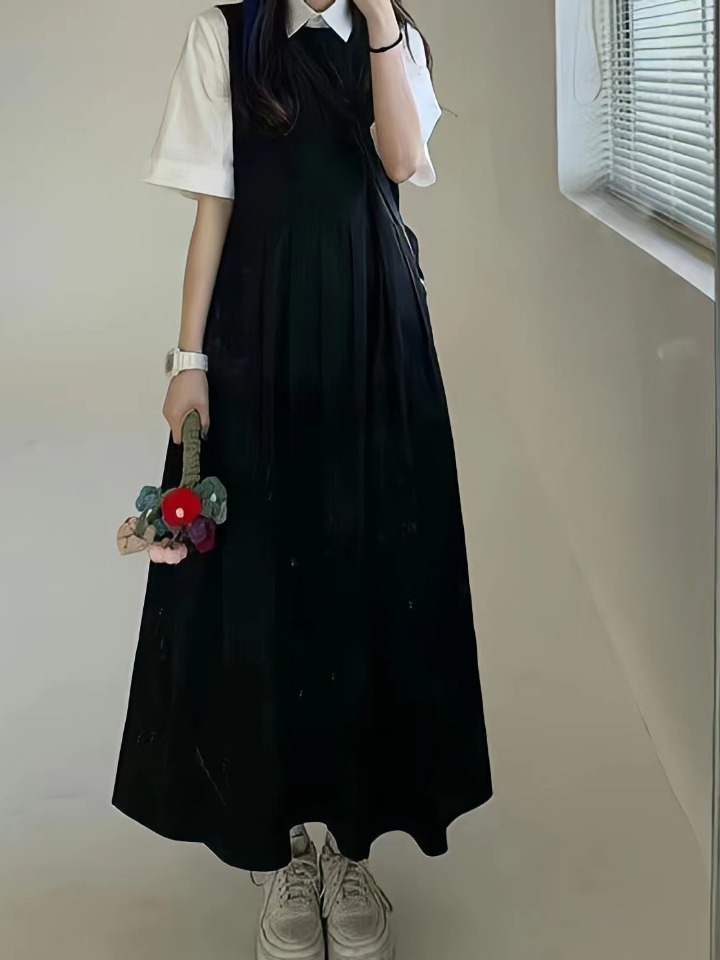裙身融入分割线处理,巧妙的拉长身线比例,分分钟就能让你穿出大长腿的感觉,并且是无袖的款式,还能给予手臂更多的舒适空间,日常搭配衬衫或是T恤都很洋气。