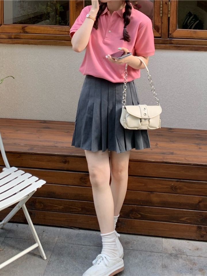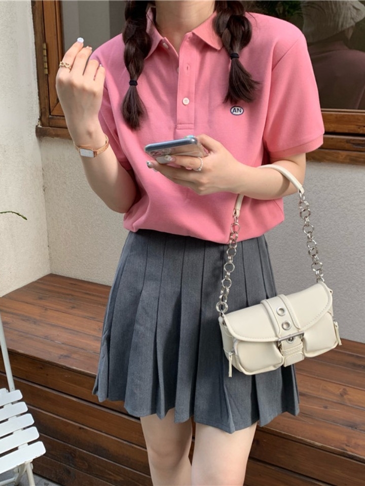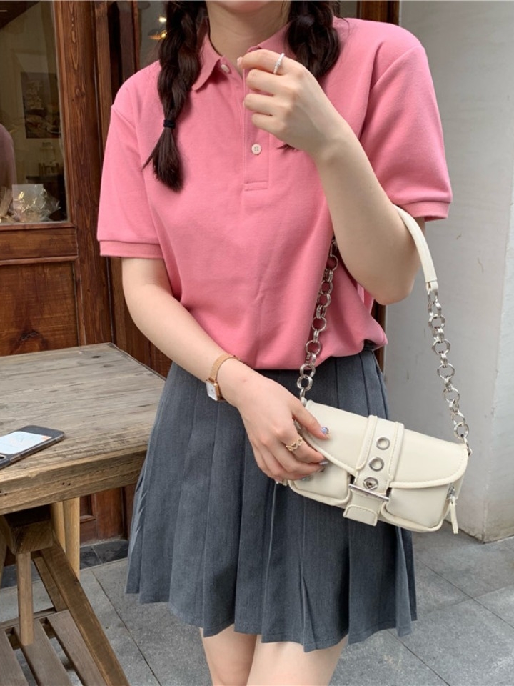 给闺蜜的生日礼物,她很喜欢的,直夸我有眼光呢。配上一款玫红色的短袖T恤和半身裙,下配一款厚底小白鞋,甜美出行。