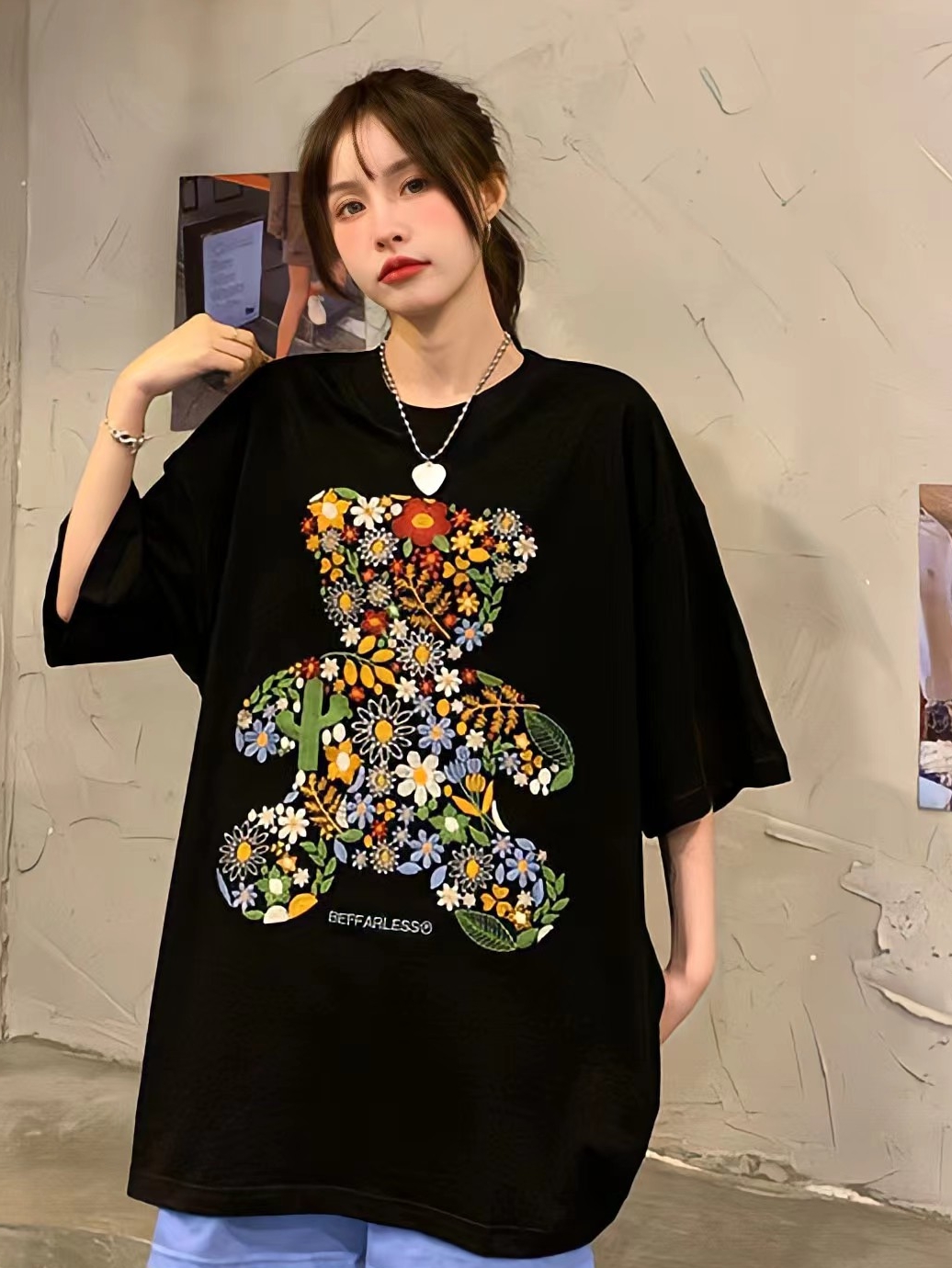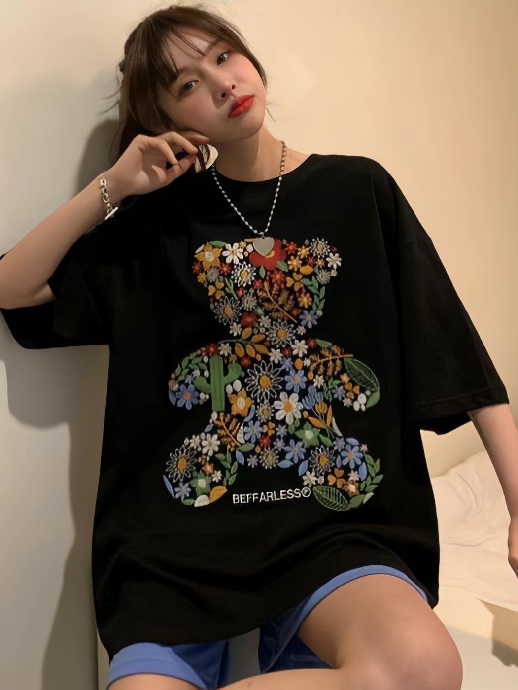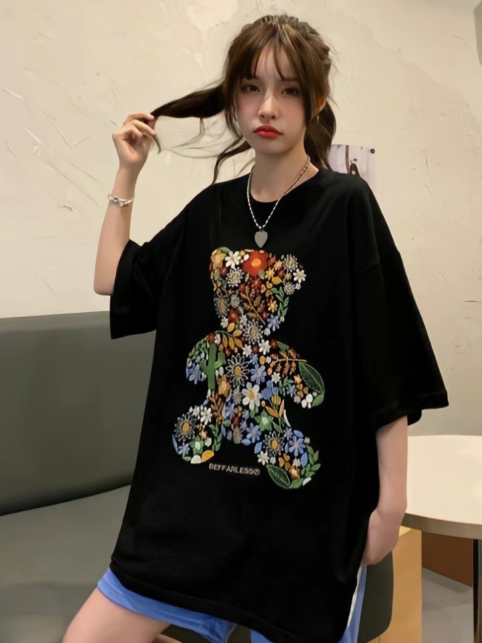 恰到好处的衣长,刚好盖住我的大屁屁,完美的遮盖住我的缺点部分,而衣身的小熊印花图案,尽显童真童趣的味道。