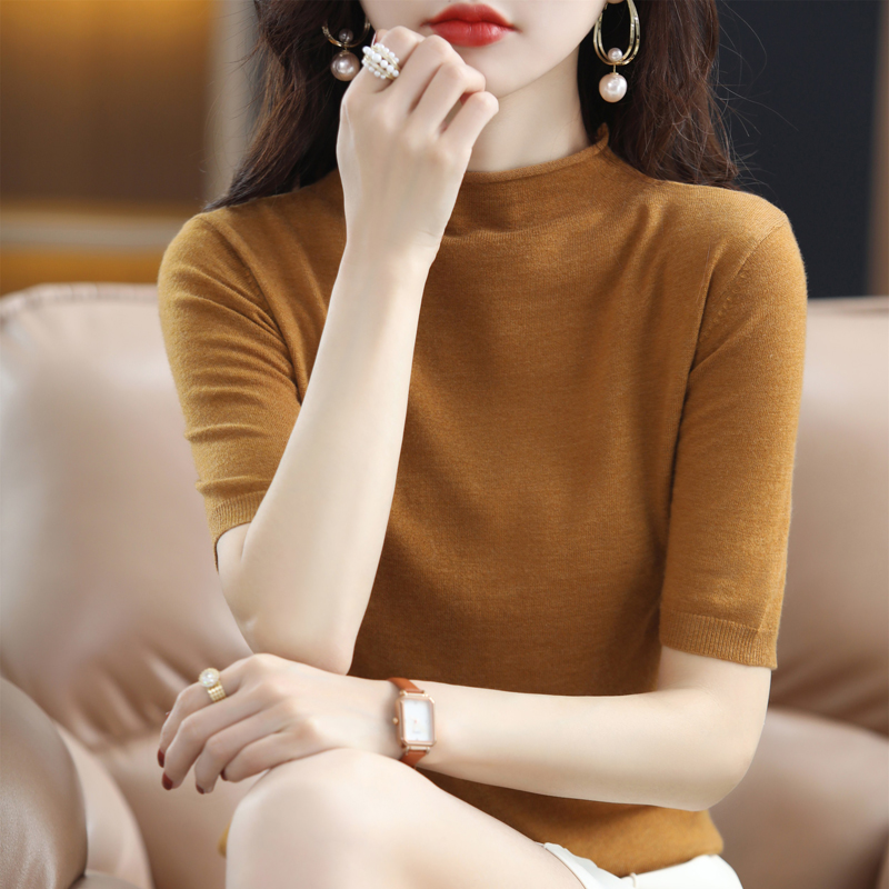 半高领的设计,修饰颈部线条,凸显女性的柔美气质,简约的纯色,时尚百搭,修身的版型,勾勒出曼妙的身姿,优雅迷人。