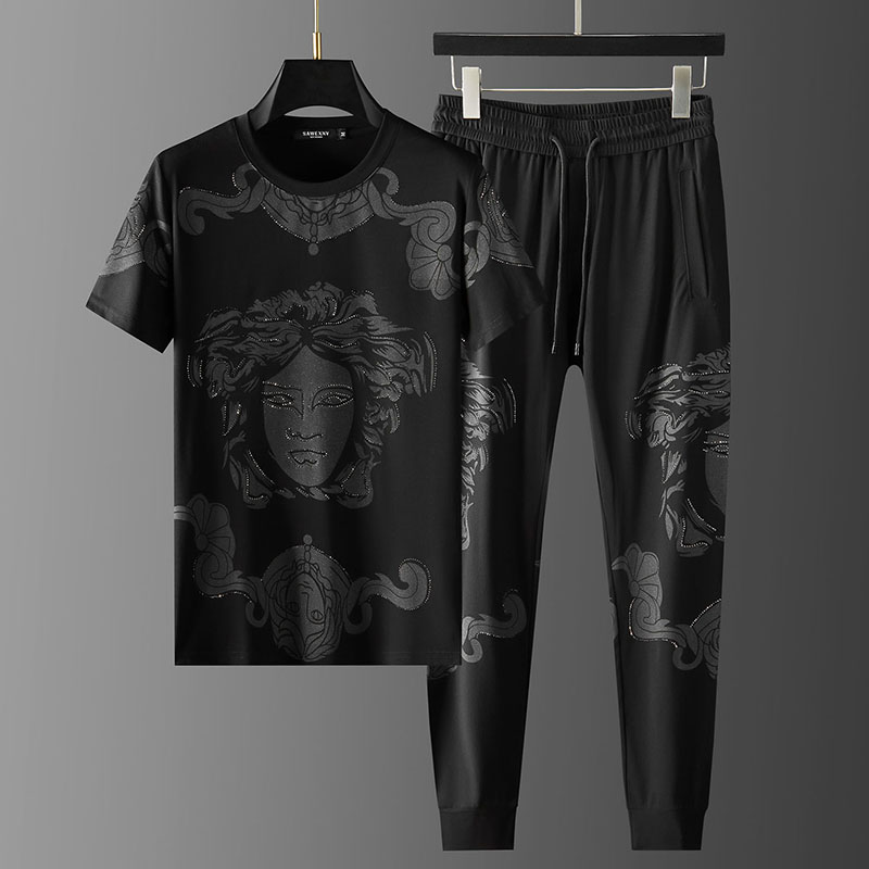 短袖设计,修饰手臂线条,宽松版型,穿着舒适自在,套装设计,省去搭配烦恼,西装领设计,男人味十足。