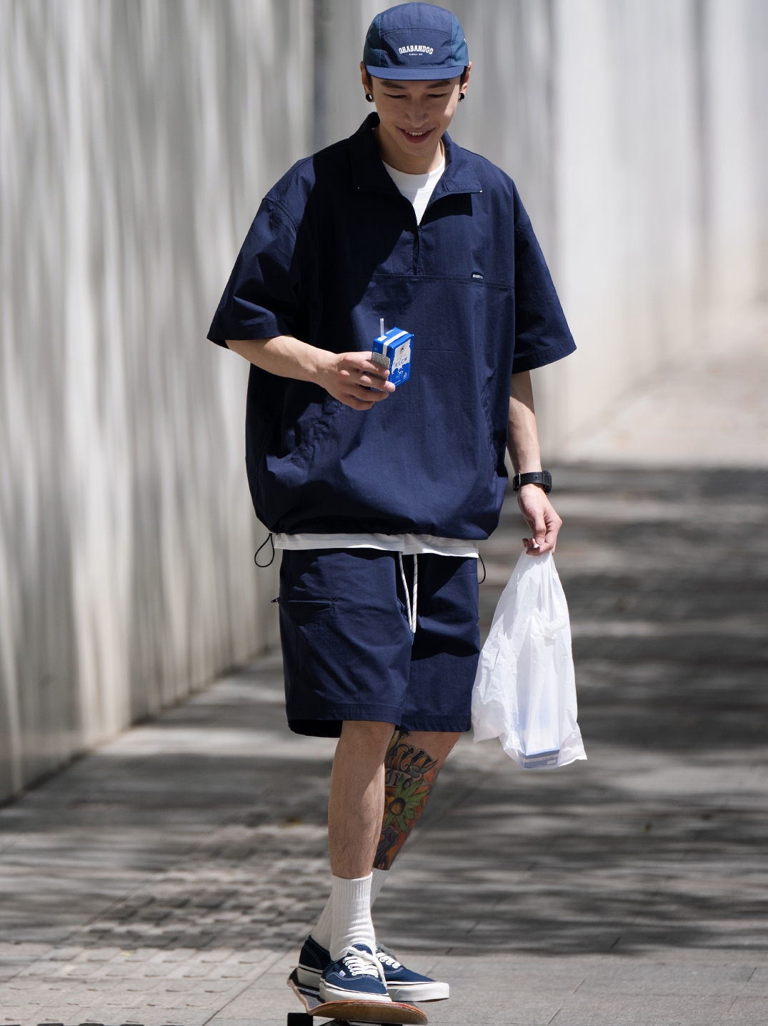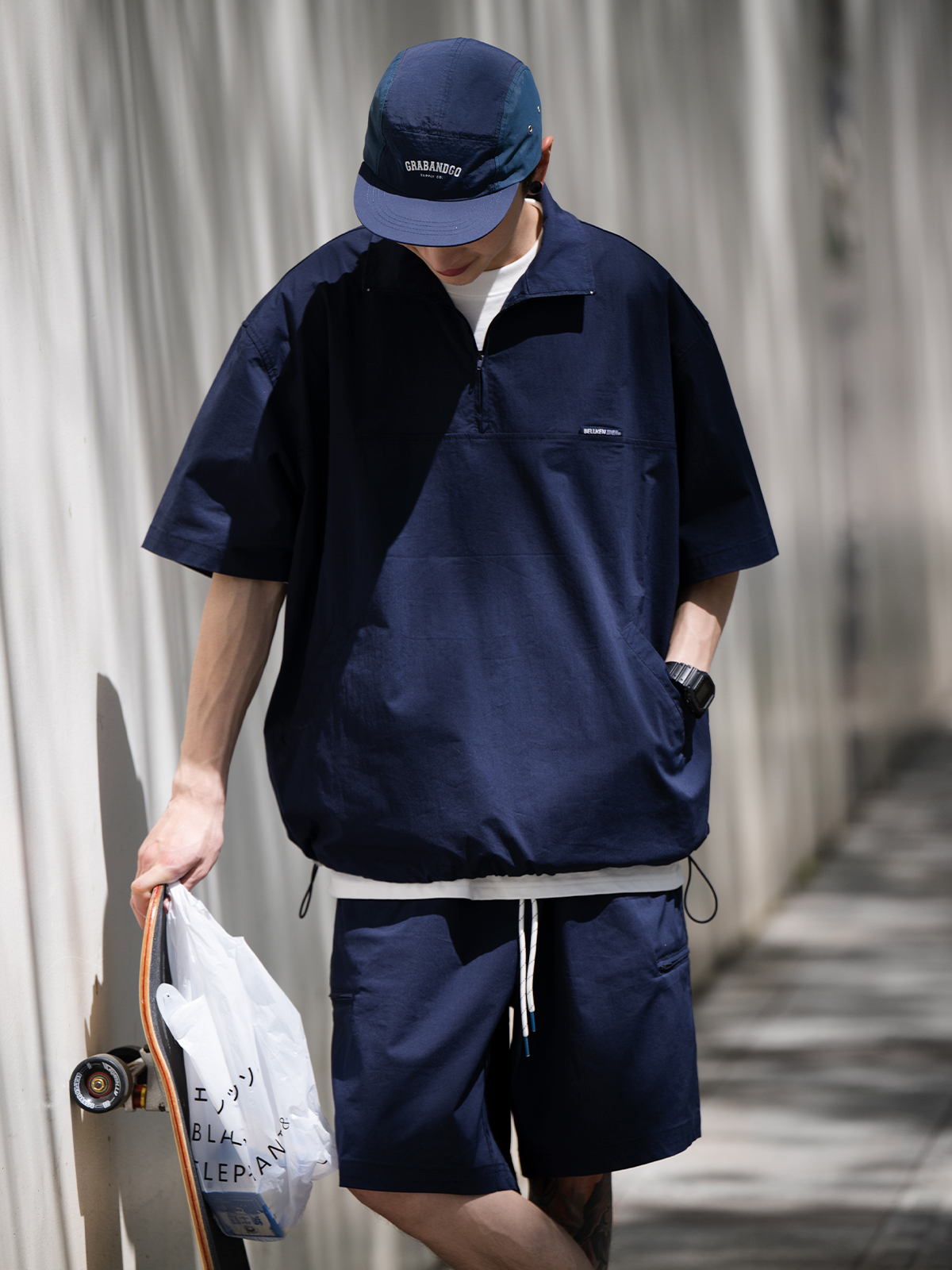 这款短袖不同于普通T恤,多了一分个性。面料上也是采用了聚脂钎维的面料,穿着更加的舒适,小细节是领口拉链的设计,起到点缀的作用。夏天单穿这一件,秋天里面搭个纯白短袖,可以做短袖也可以做外套,实用又百搭~