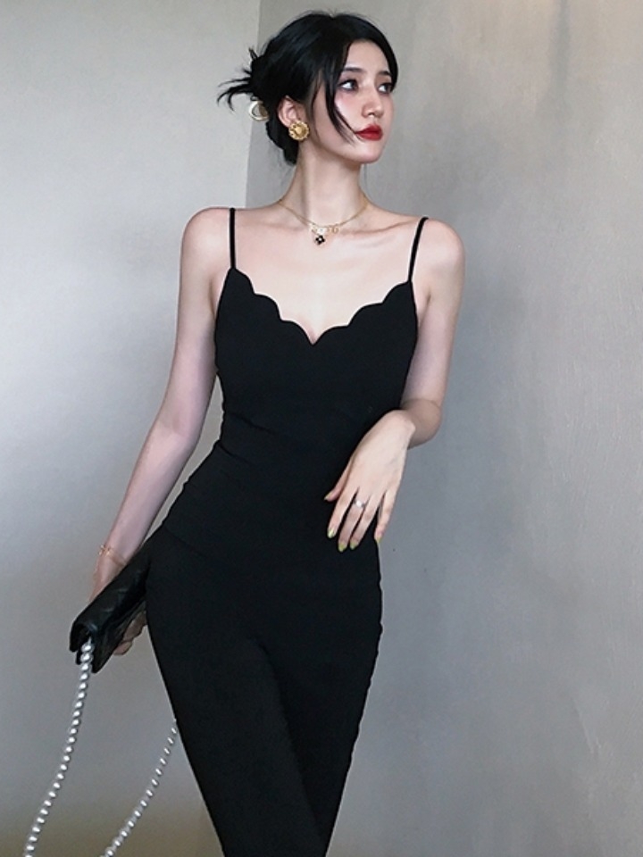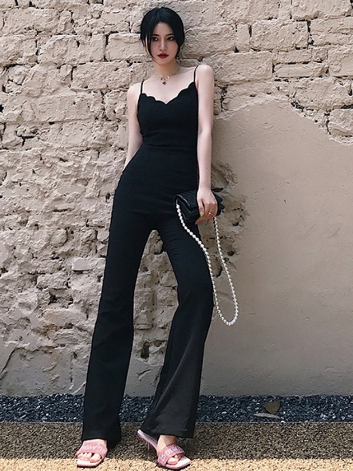 时髦的连体裤,轻薄的面料材质,手感柔软,穿着飘逸,纤细的吊带,搭配性感的V领,时髦优雅。