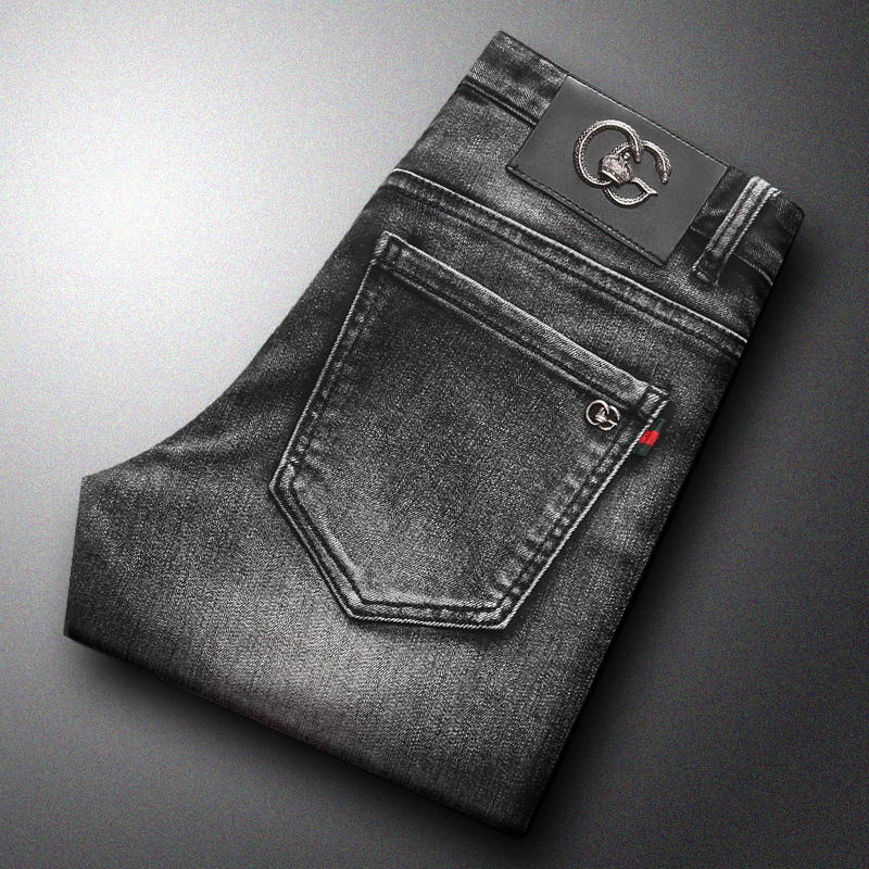 小脚裤型,修饰腿部线条。修身版型,凸显身材曲线。牛仔裤,穿着舒适不紧绷。