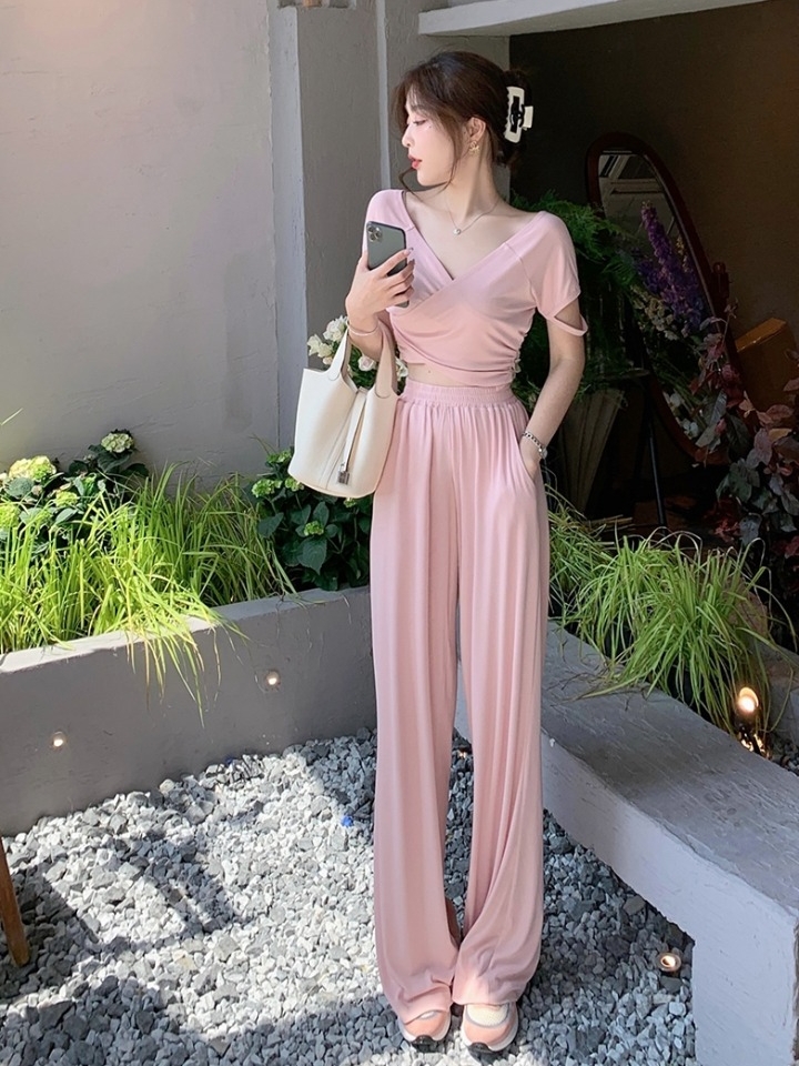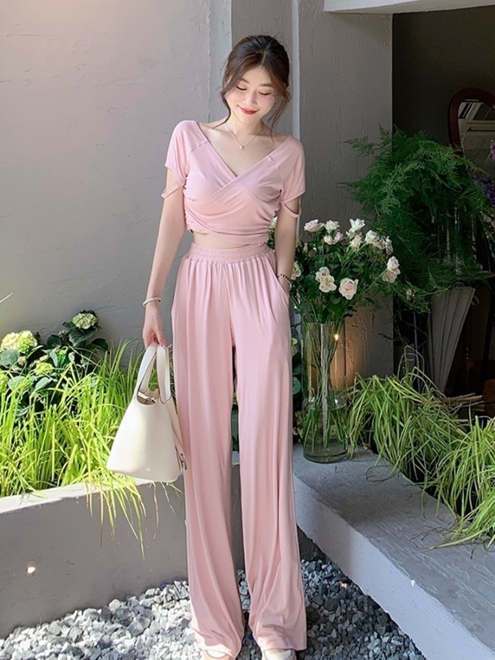 选用有垂坠感的面料,夏天穿也很舒适,无论是单穿还是外搭外套,都显高逼格, 下身的阔腿裤更显瘦,整套穿着彰显慵懒。