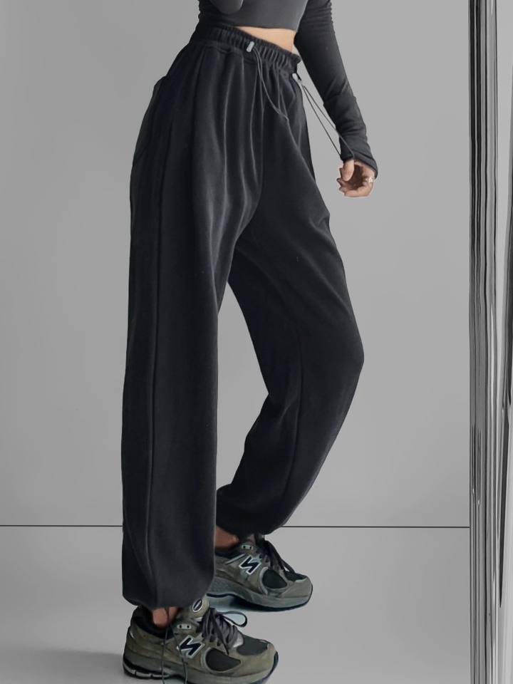 一款宽松休闲的加绒裤,质地柔软。微微加厚,内加绒的设计穿着温暖舒适。每个给你不同的心情。腰部有弹性,有抽绳,裤前有个大口袋。