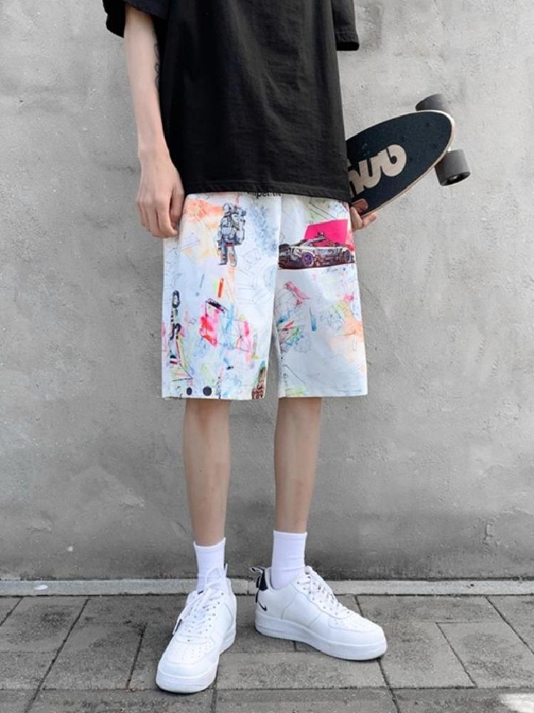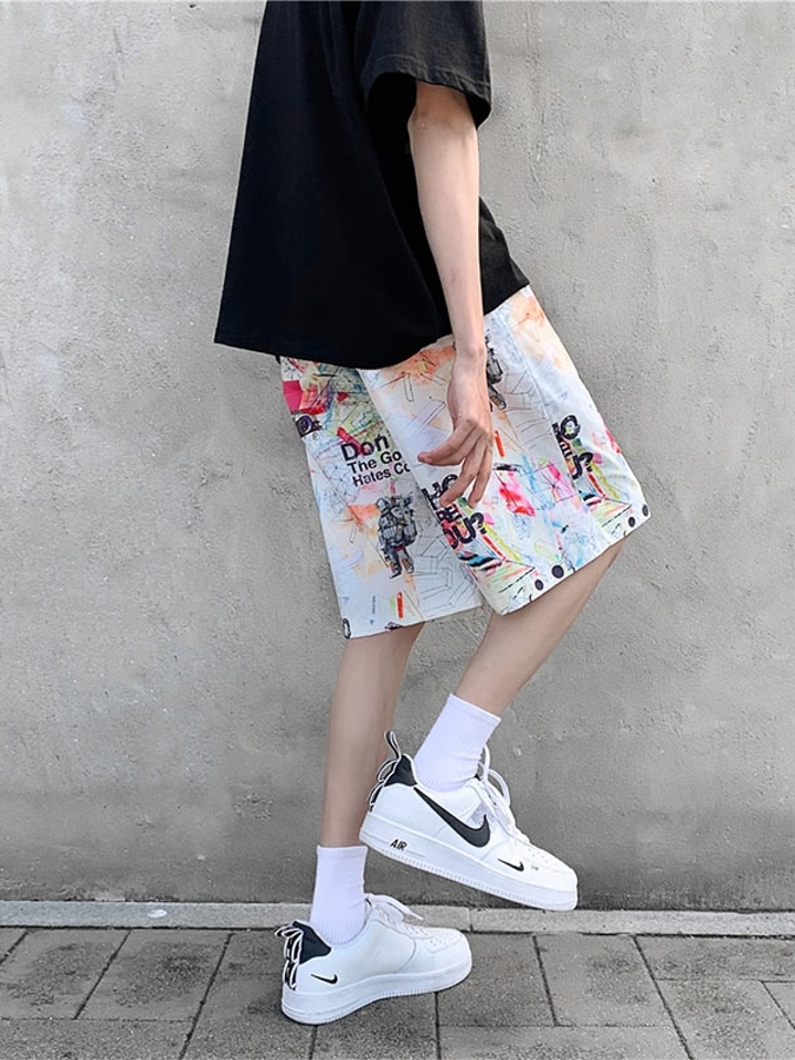 宽松的灰色短裤采用剪裁和贴合人体结构的方式,使整体饱满时尚。系打底裤与普森漫画图案相结合,有趣的可爱感觉~~