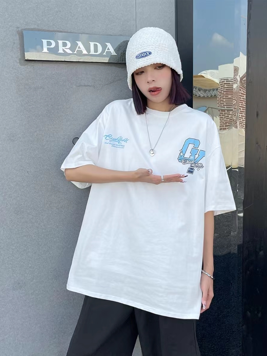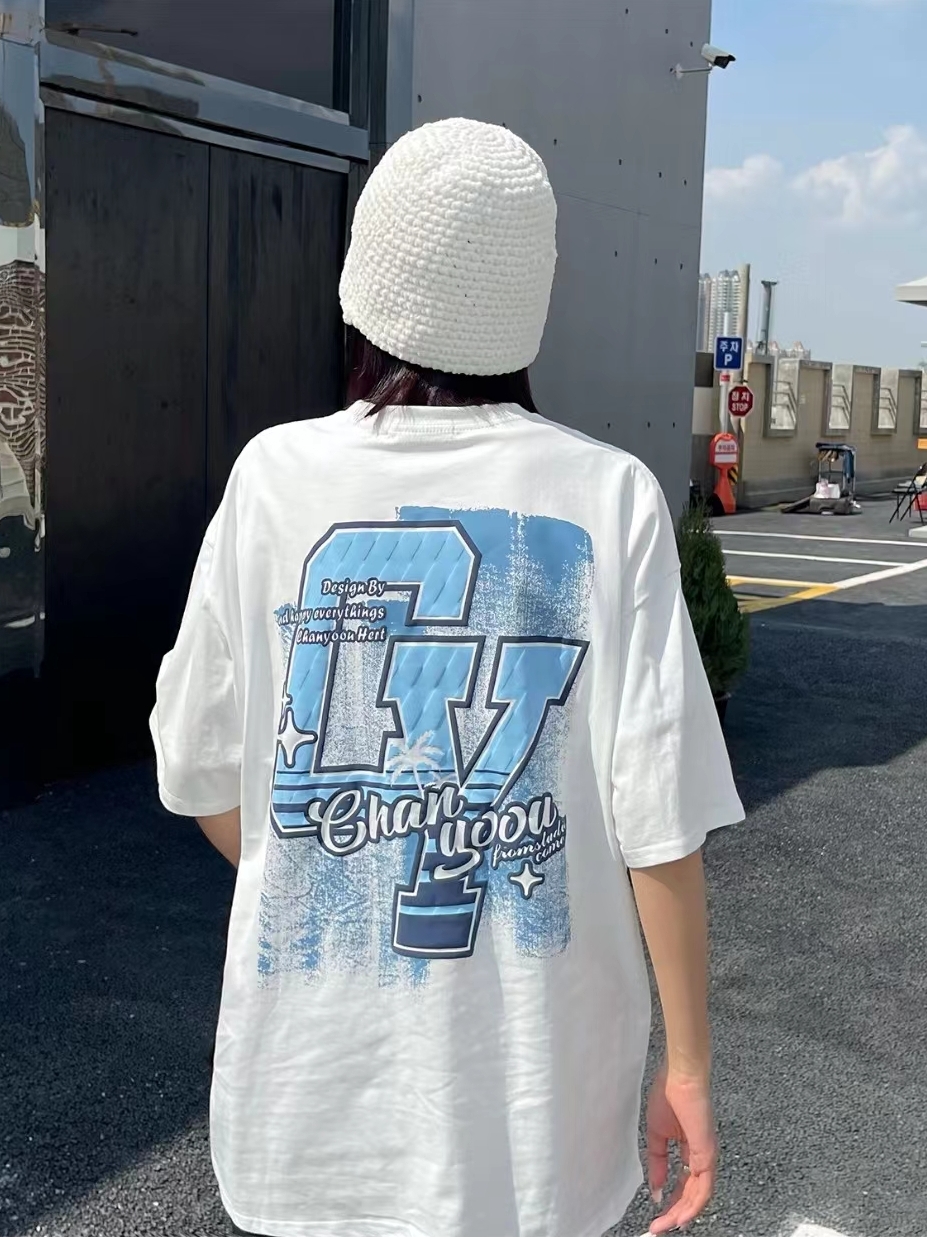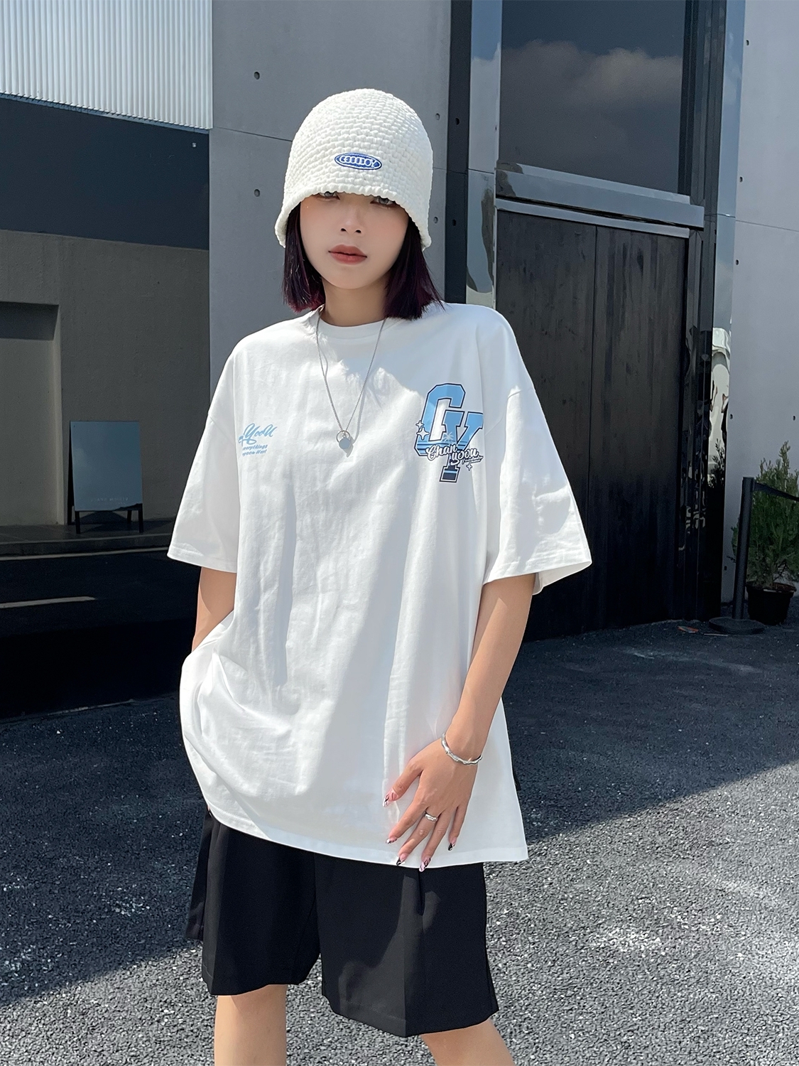 这款t恤是简约的风格,宽松的版型,时尚百搭,胸前的字母印花,很有个性,搭配牛仔裤或者短裤都很好看。