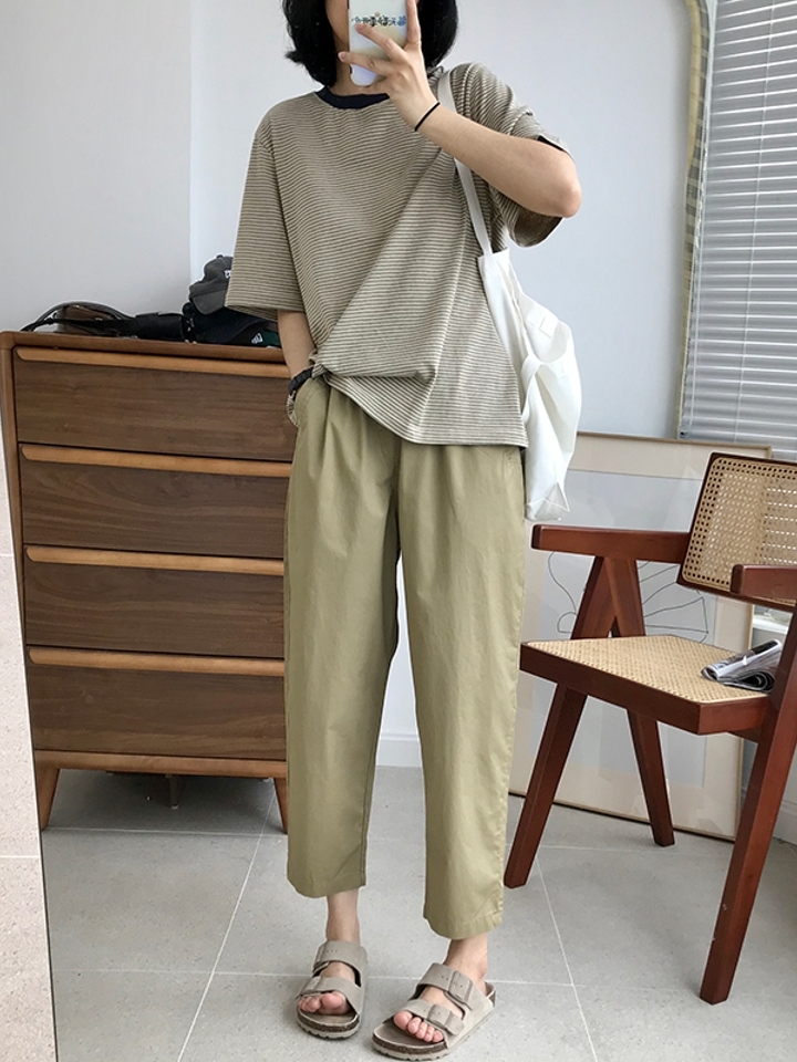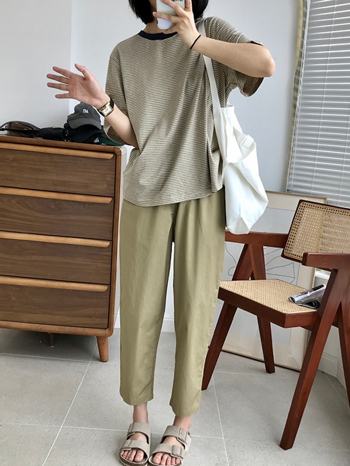 它穿上舒适感很强,也很好搭配,我用它搭配短袖T恤,搭配起来很洋气,再搭配一双凉鞋,就能舒适又凉快。