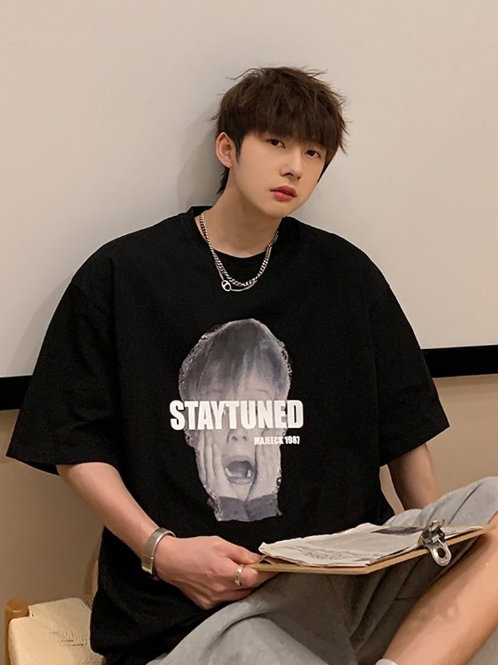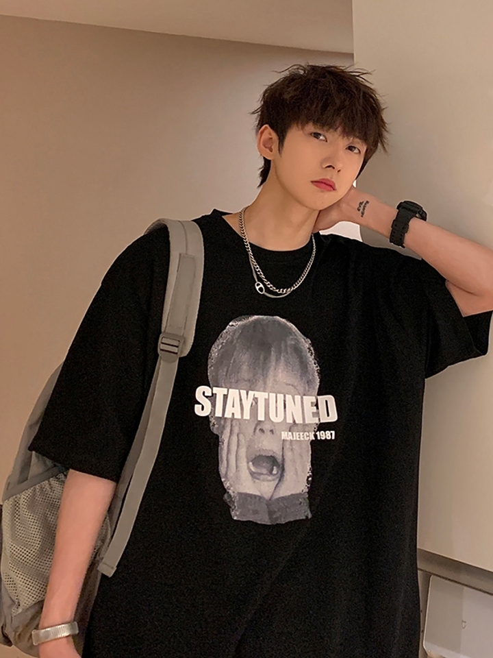 字母点缀,吸睛又抢眼,为这件T恤增添了时髦感,穿上它就能个性十足了,而且宽松的版型设计,穿着舒适感也很好。