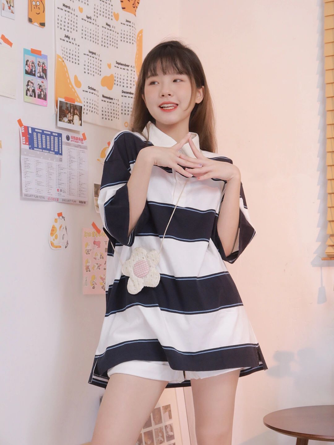 纯棉的面料,穿在身上可很舒适,完全没有那种不适的粘腻感和刺痛感,并且一点闷热的感觉都没有,还很百搭。像超甜的热裤,搭配起来,可是相当甜美俏皮。