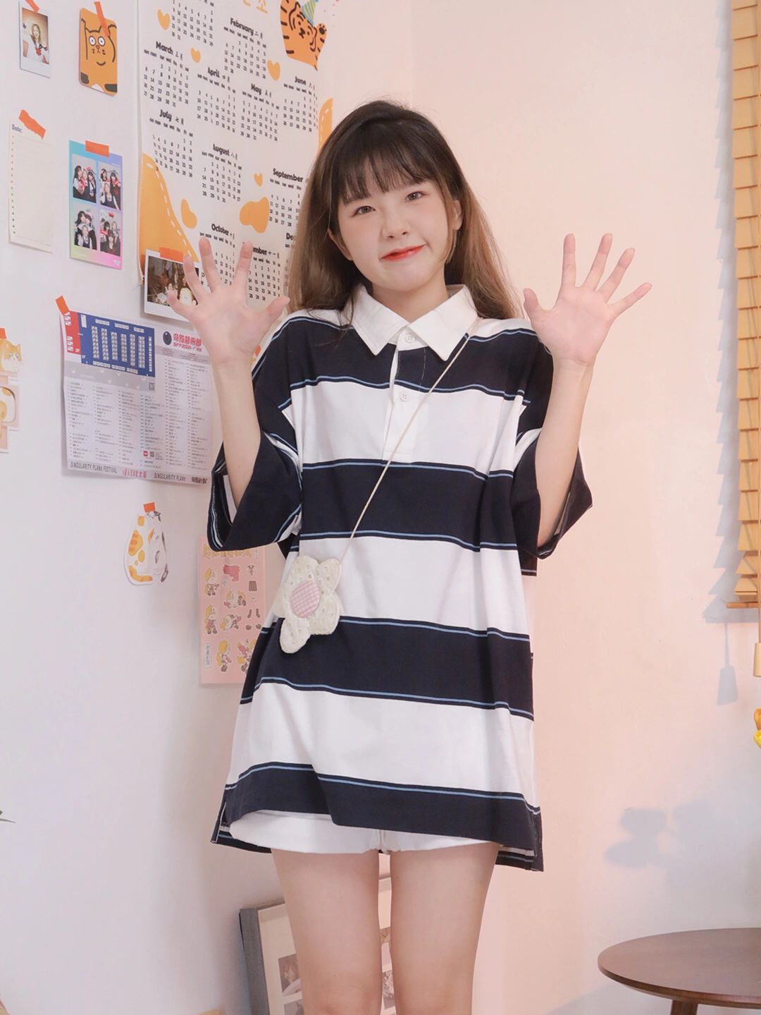 这款POLO衫版型宽松,剪裁精致,所以上身效果很好,能把我的小肚腩遮挡起来。而且简约的条纹,配色高级,穿在我身上时尚感满满,又很百搭。