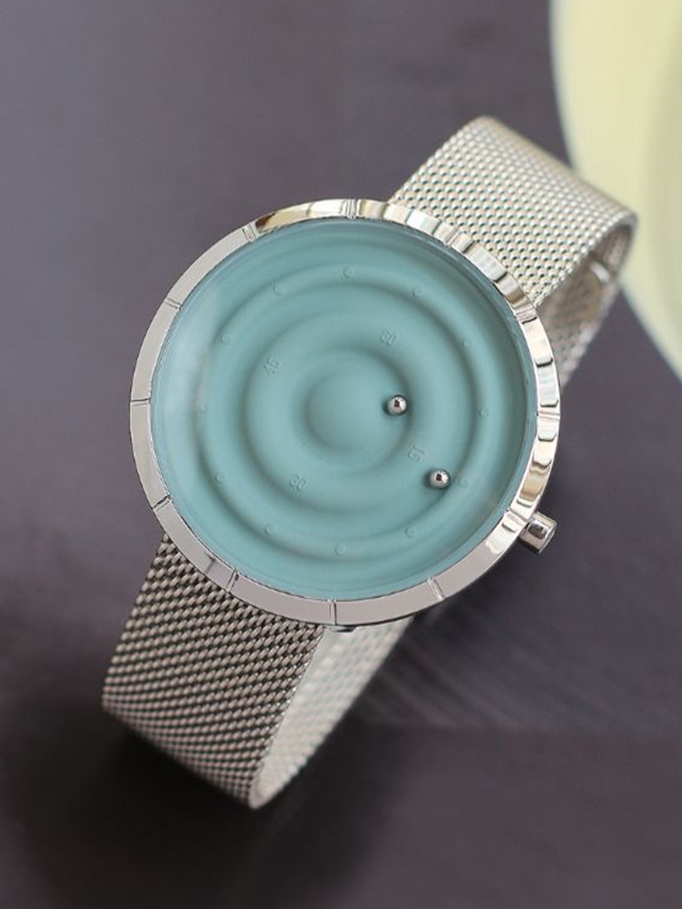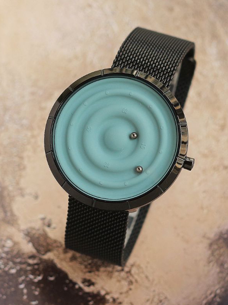 表面的钢珠显示分钟,而表侧的钢珠显示小时。如果钢珠滚离了原来的位置,轻轻地摇动你的手臂,它们便会自己回归原位。