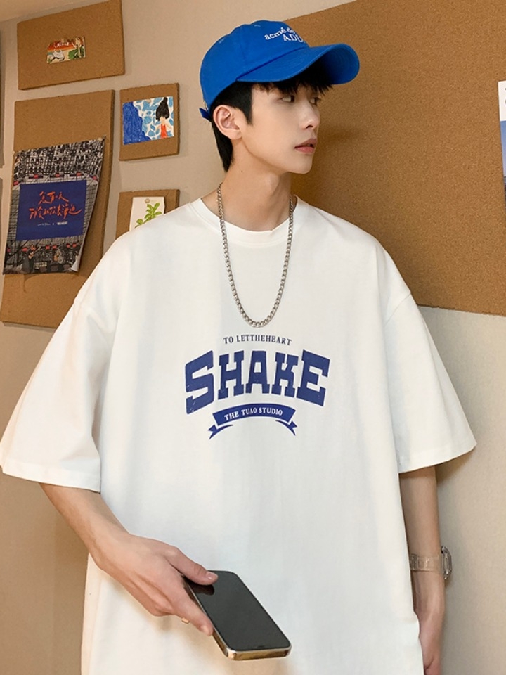 这款t恤是简约的风格,宽松的版型,时尚百搭,胸前的字母印花,很有个性,搭配牛仔裤或者短裤都很好看。