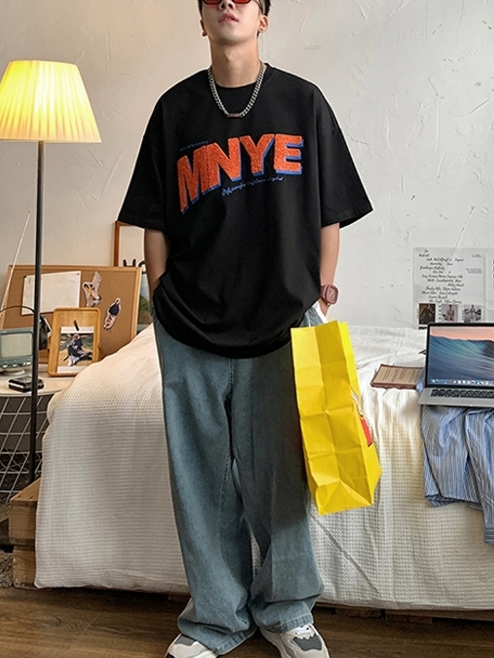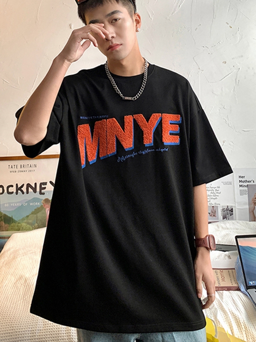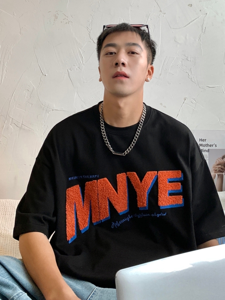 这款t恤是简约的风格,宽松的版型,时尚百搭,胸前的字母印花,很有个性,搭配牛仔裤或者短裤都很好看。