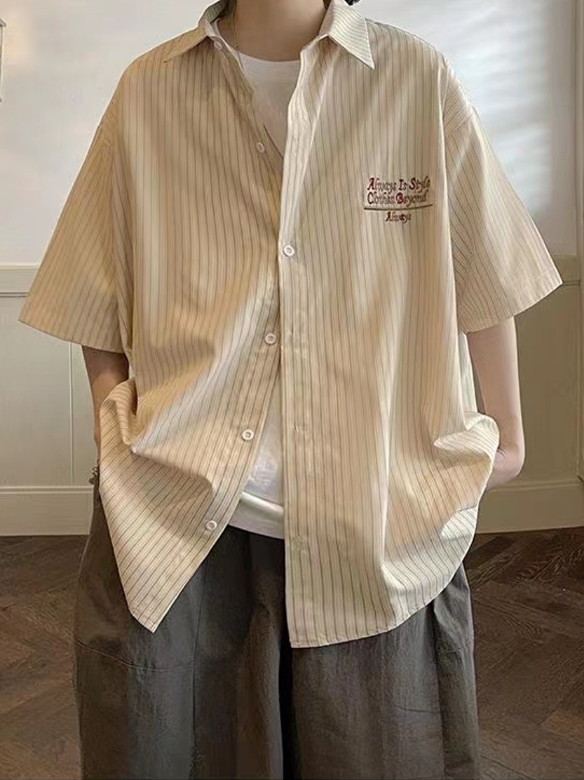 很有日系风的条纹衬衫,看上去经典又时尚,日常可以单穿也能搭配T恤当小外套,米白色的颜色,奶呼呼的很温柔。