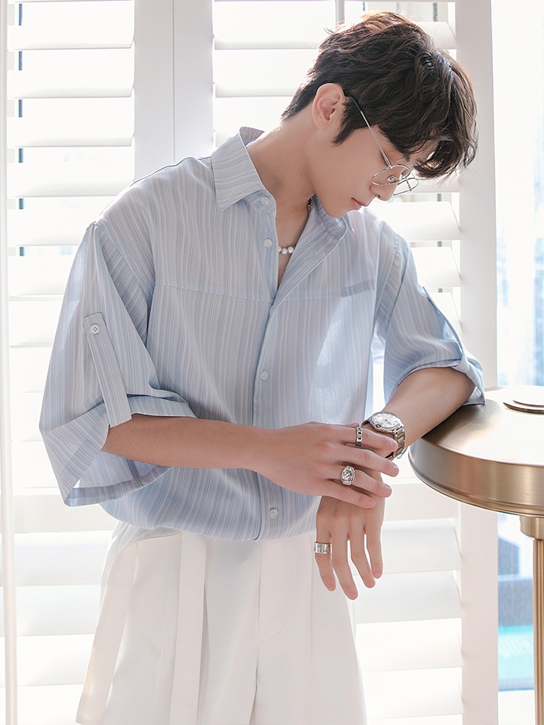 清新的蓝白条纹,色彩过渡流畅,延续了休闲假日系列的风格元素,搭配起来也是随性所欲,适合多场合