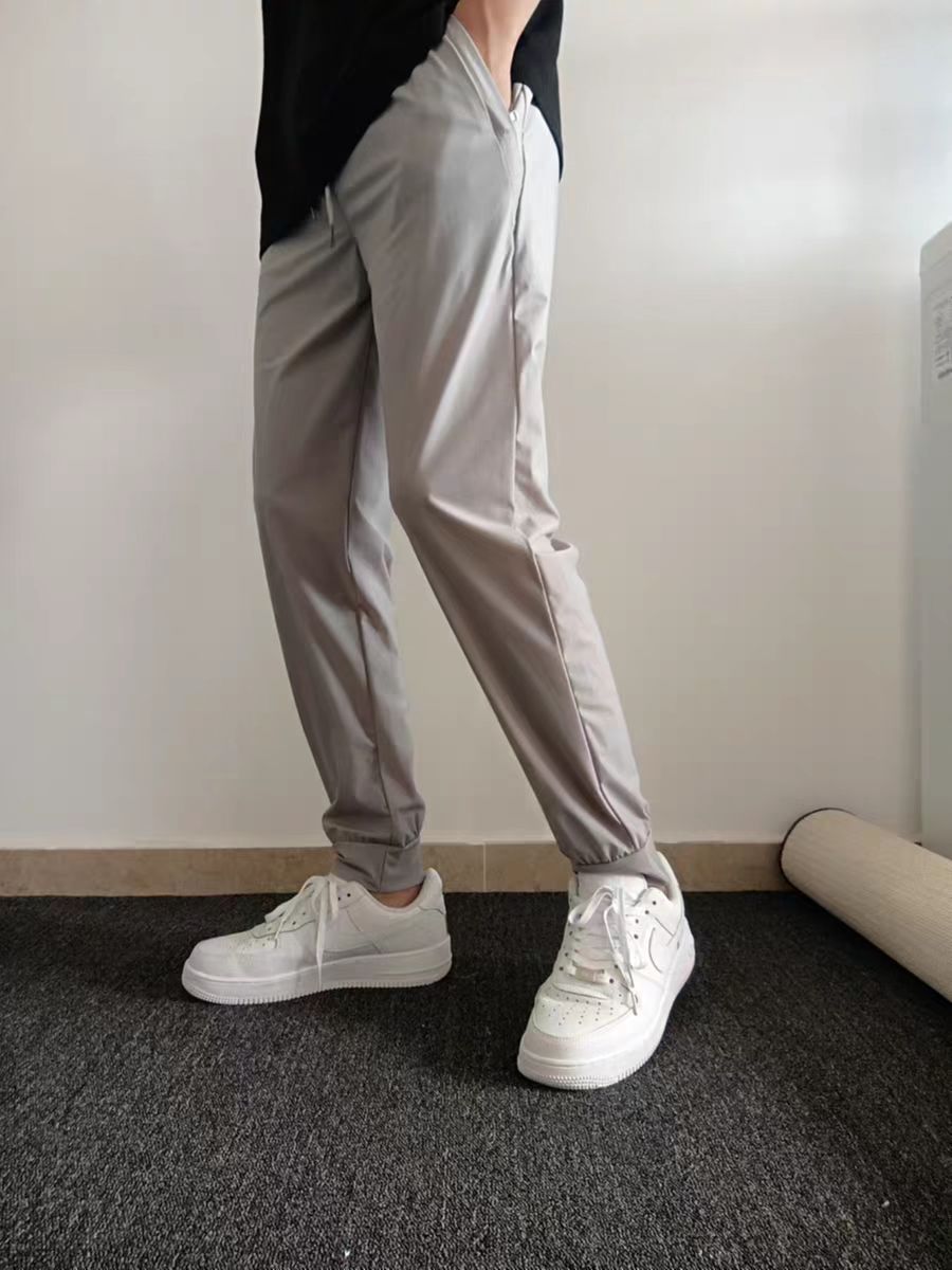 轻薄透气的面料,爽滑不易皱,显瘦的小脚版型,线条流畅利落,勾勒出纤细笔直的腿线,彰显干练气质,恰到好处的九分长度,显高舒适。