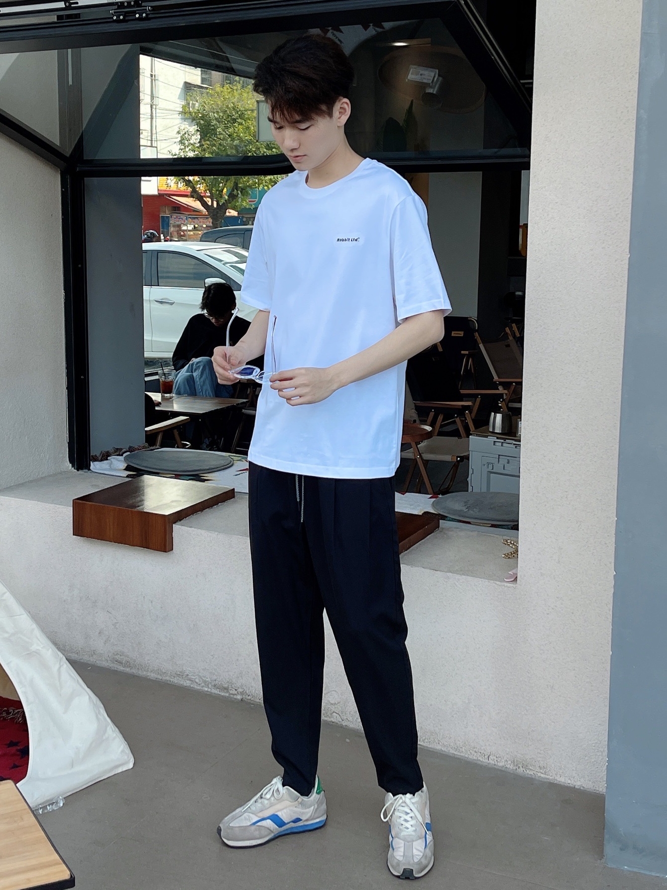 这款t恤是简约的风格,宽松的版型,时尚百搭,胸前的字母印花,很有个性,搭配牛仔裤或者短裤都很好看。