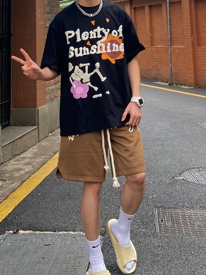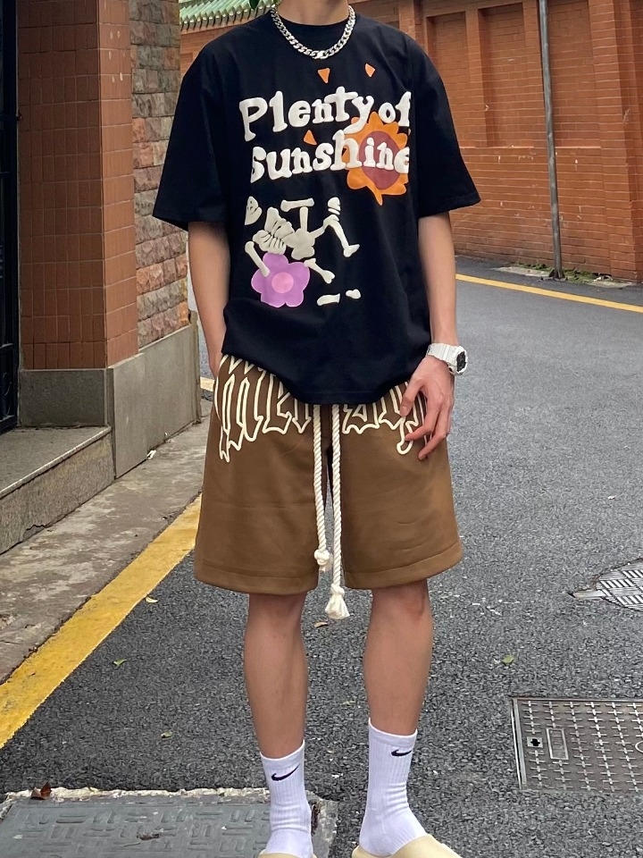 这款短裤选用优质锦纶材质,透气舒适,吸湿排汗,有效抵抗紫外线,速干易洗涤,裤子两侧为印花图案装饰,个性时尚。