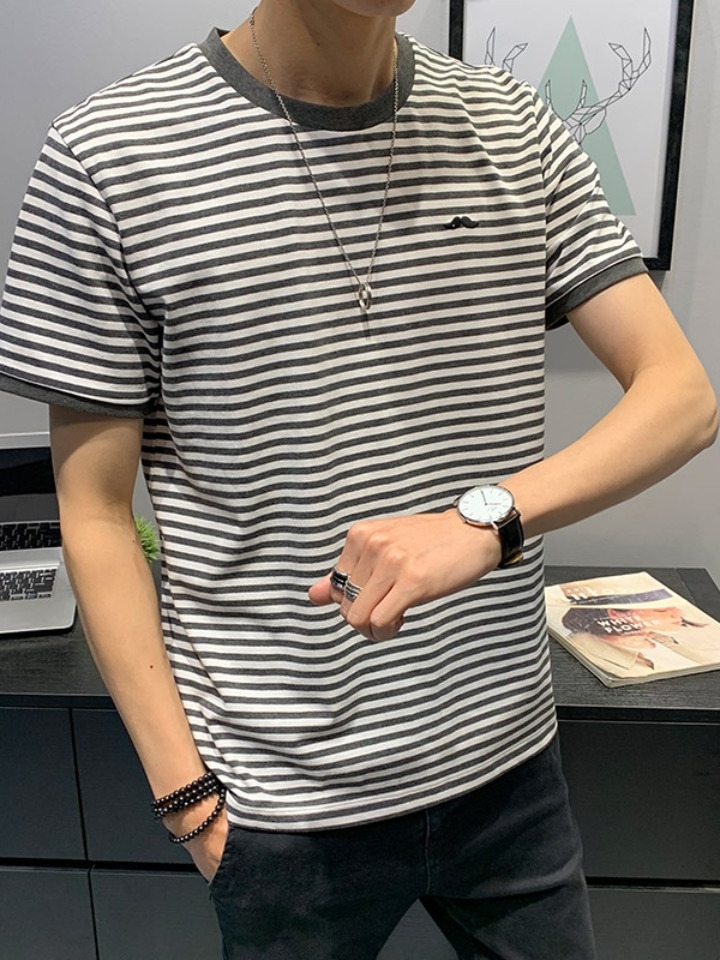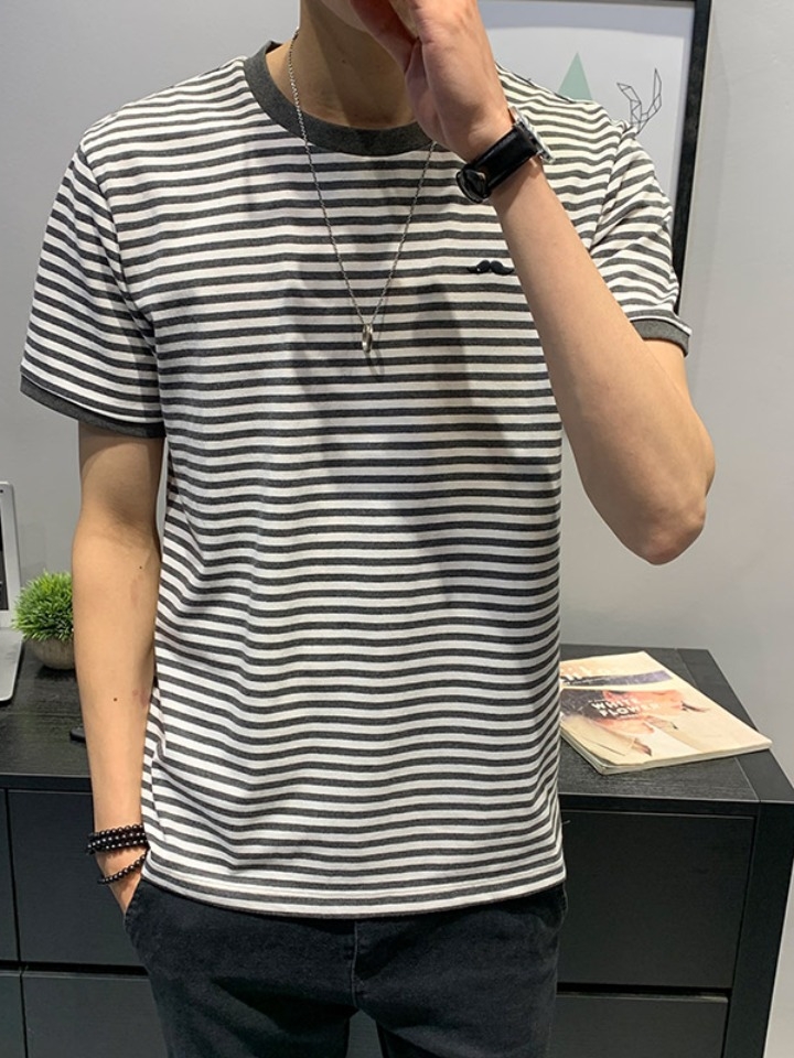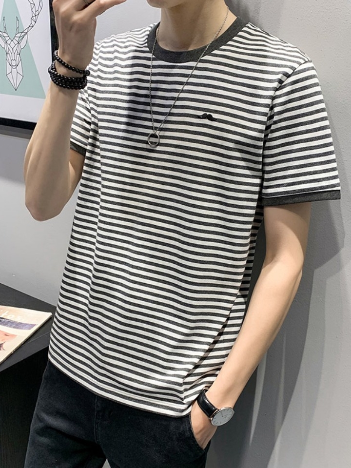 条纹tee,亲肤性佳,温和舒适,有弹性厚度适中,乖巧优雅的圆领设计蝙蝠袖设计,全身条纹图案,青春活力。