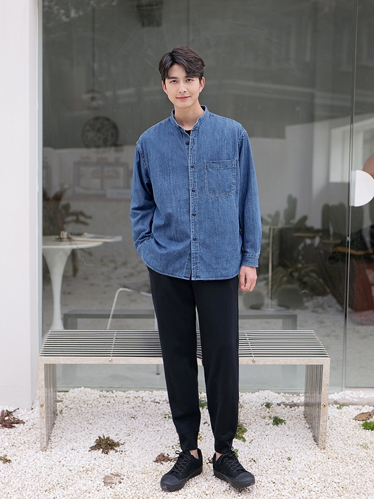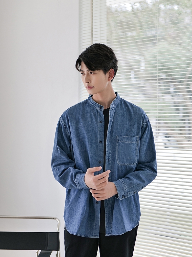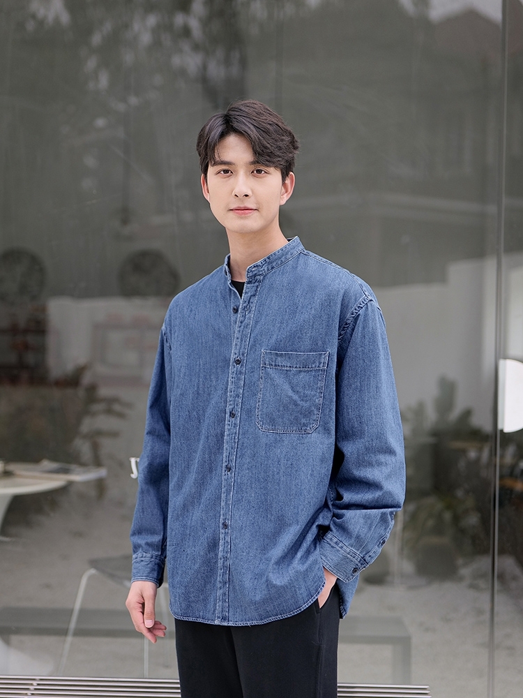 这款牛仔衬衫蓝色基调渲染,上身十分显肤色。加上立领领口设计,也能轻松拉长颈部线条,让我在视觉上更加修长。